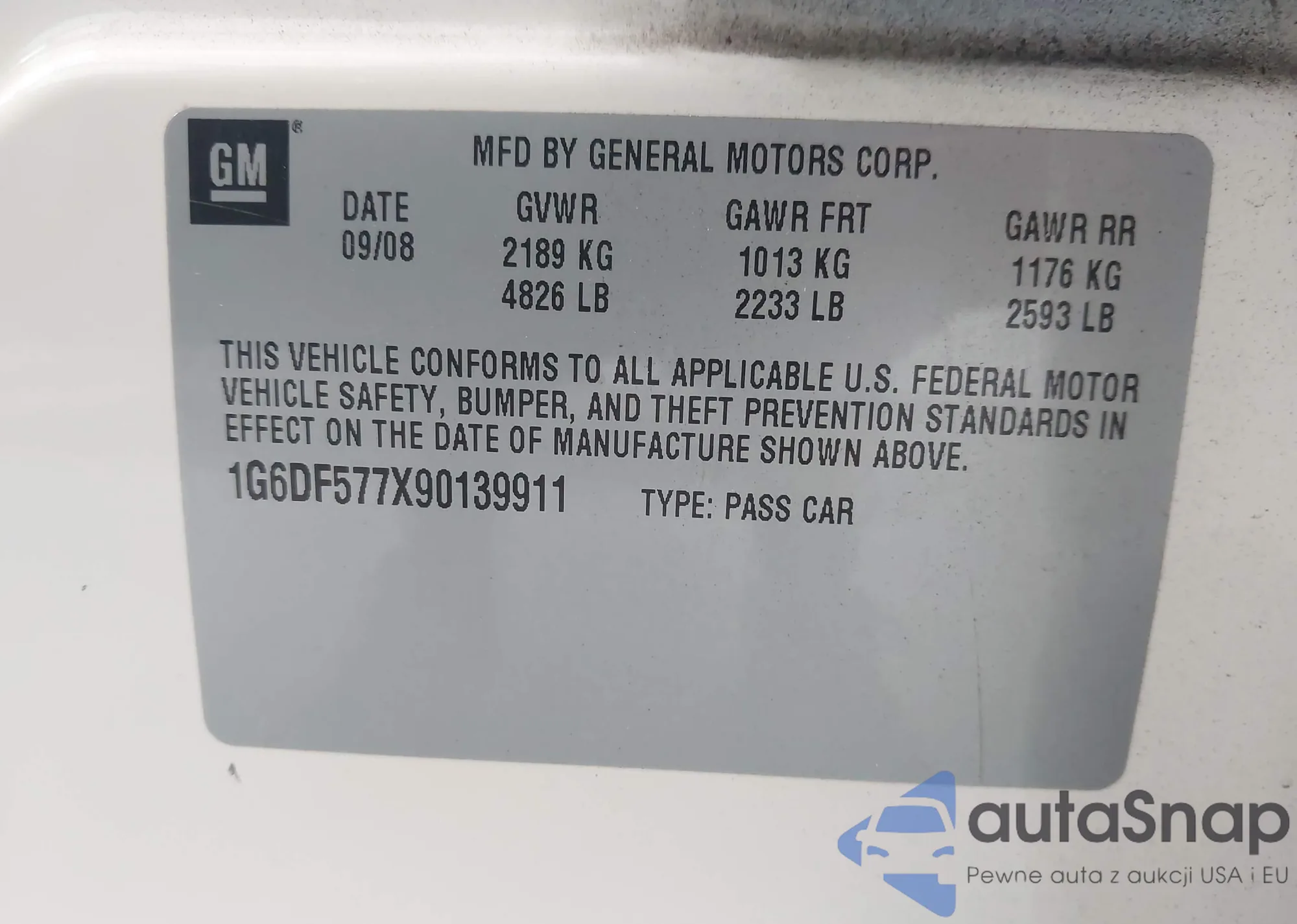 • VIN 1G6DF577X90139911