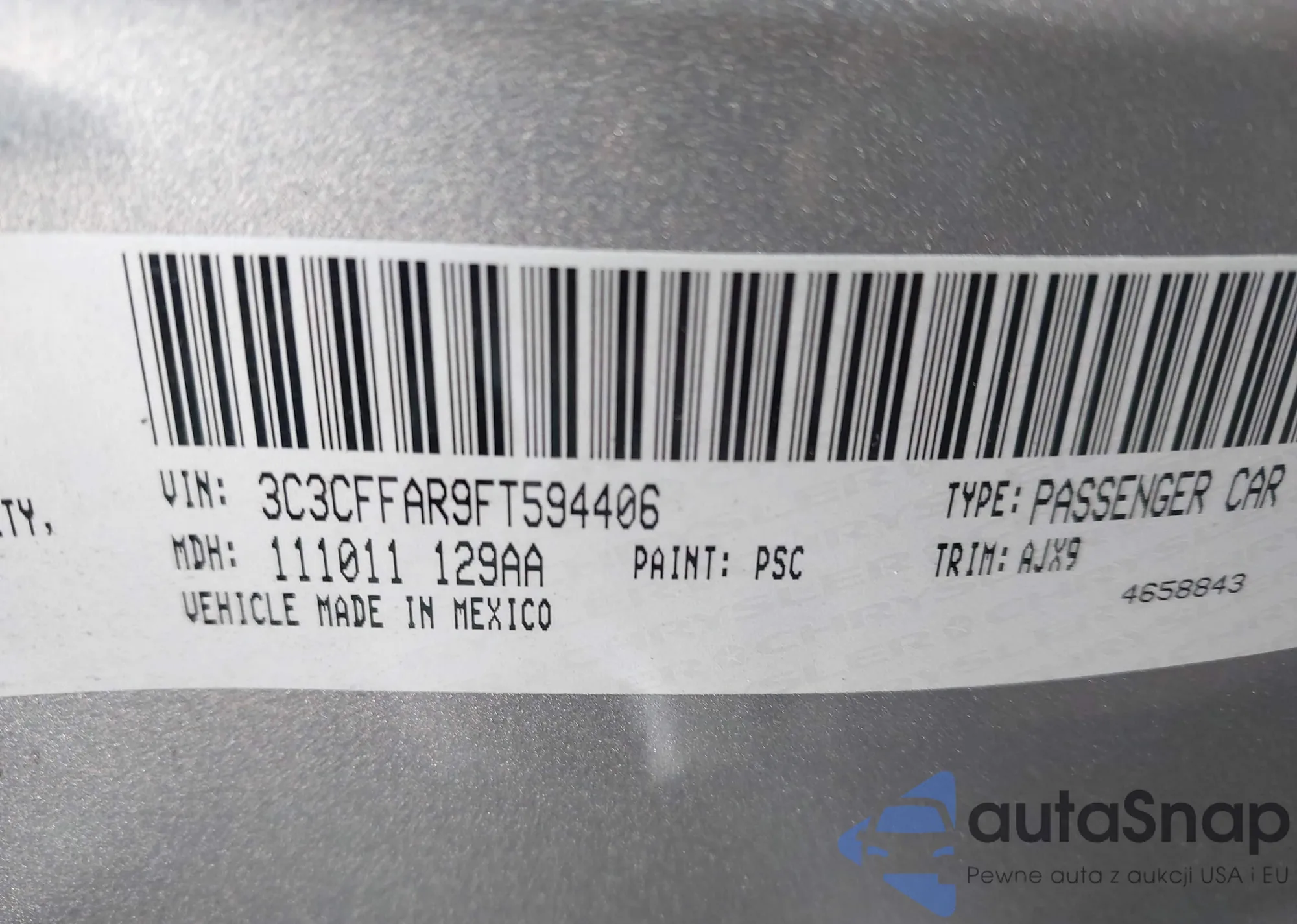 LOT: 43479195 VIN: 3C3CFFAR9FT594406