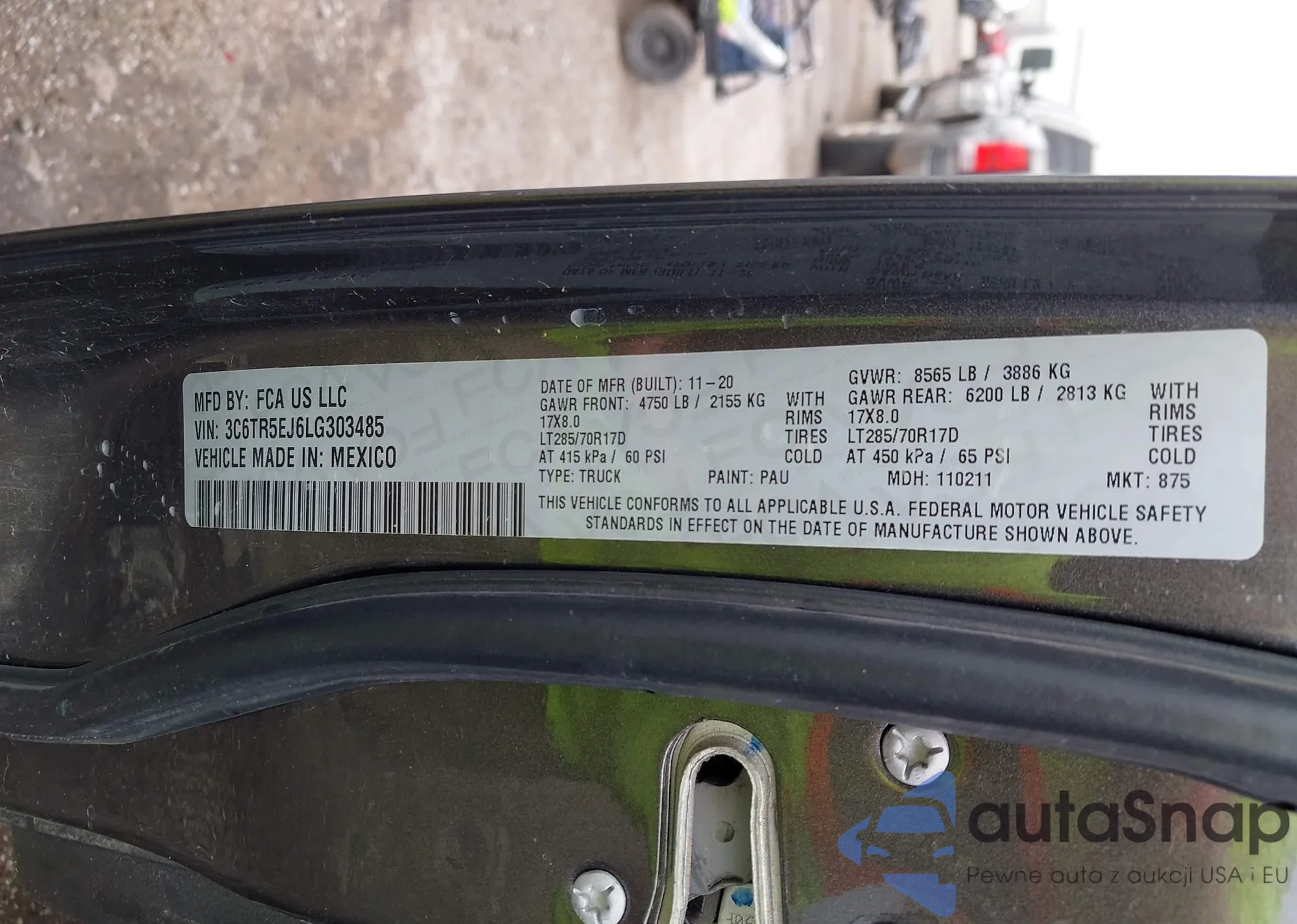 • VIN 3C6TR5EJ6LG303485