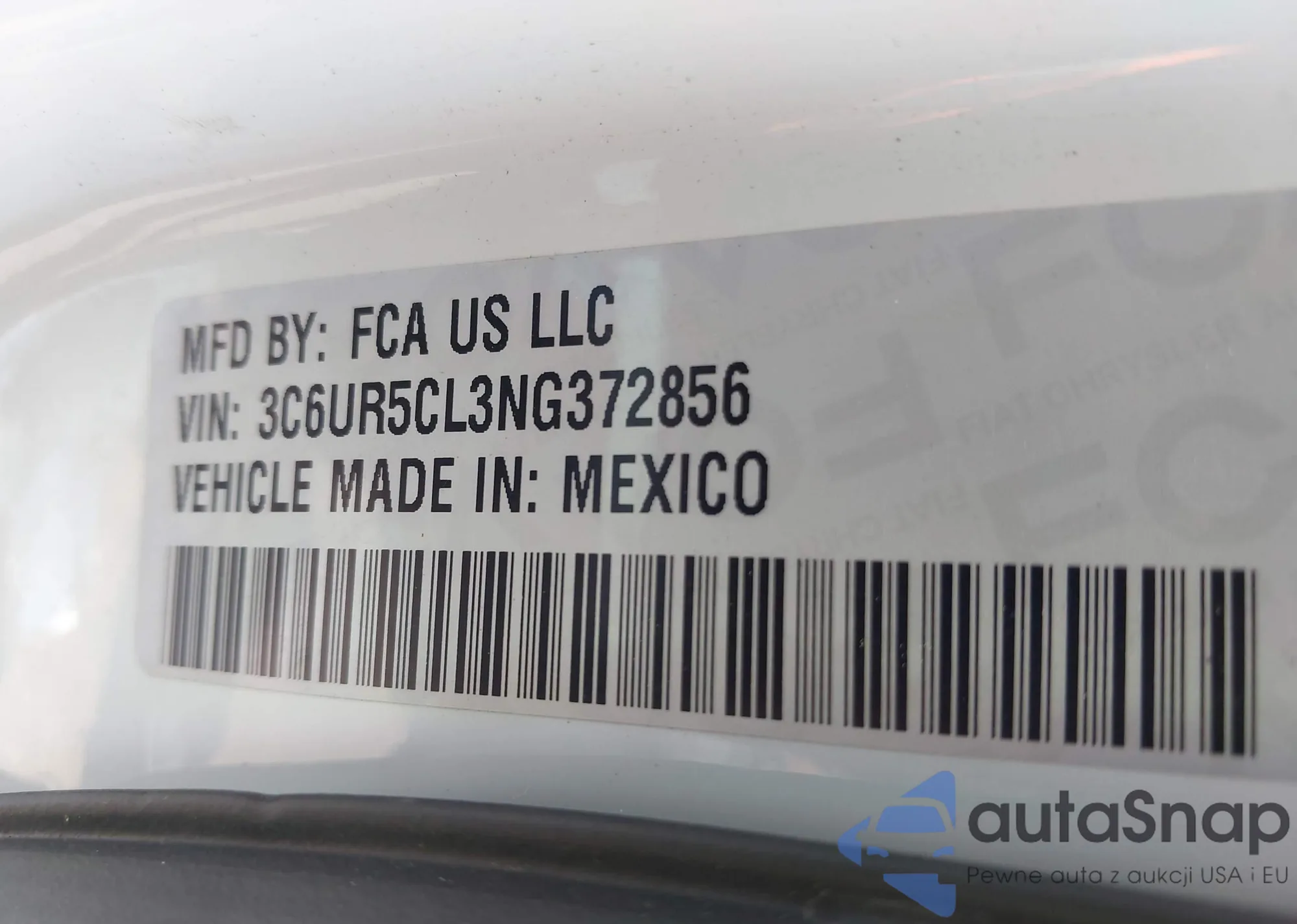LOT: 42390947 VIN: 3C6UR5CL3NG372856