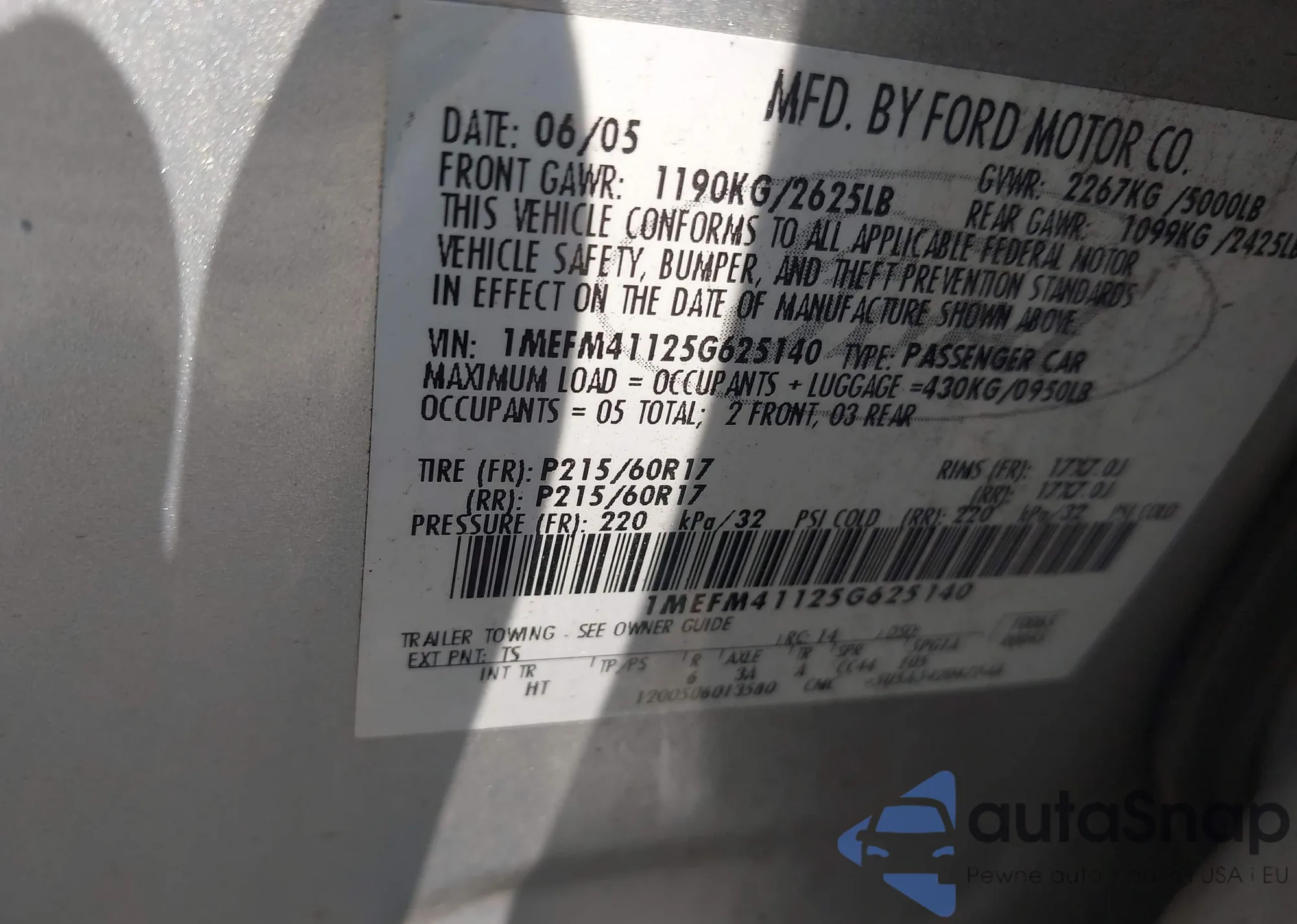 LOT: 42425843 VIN: 1MEFM41125G625140