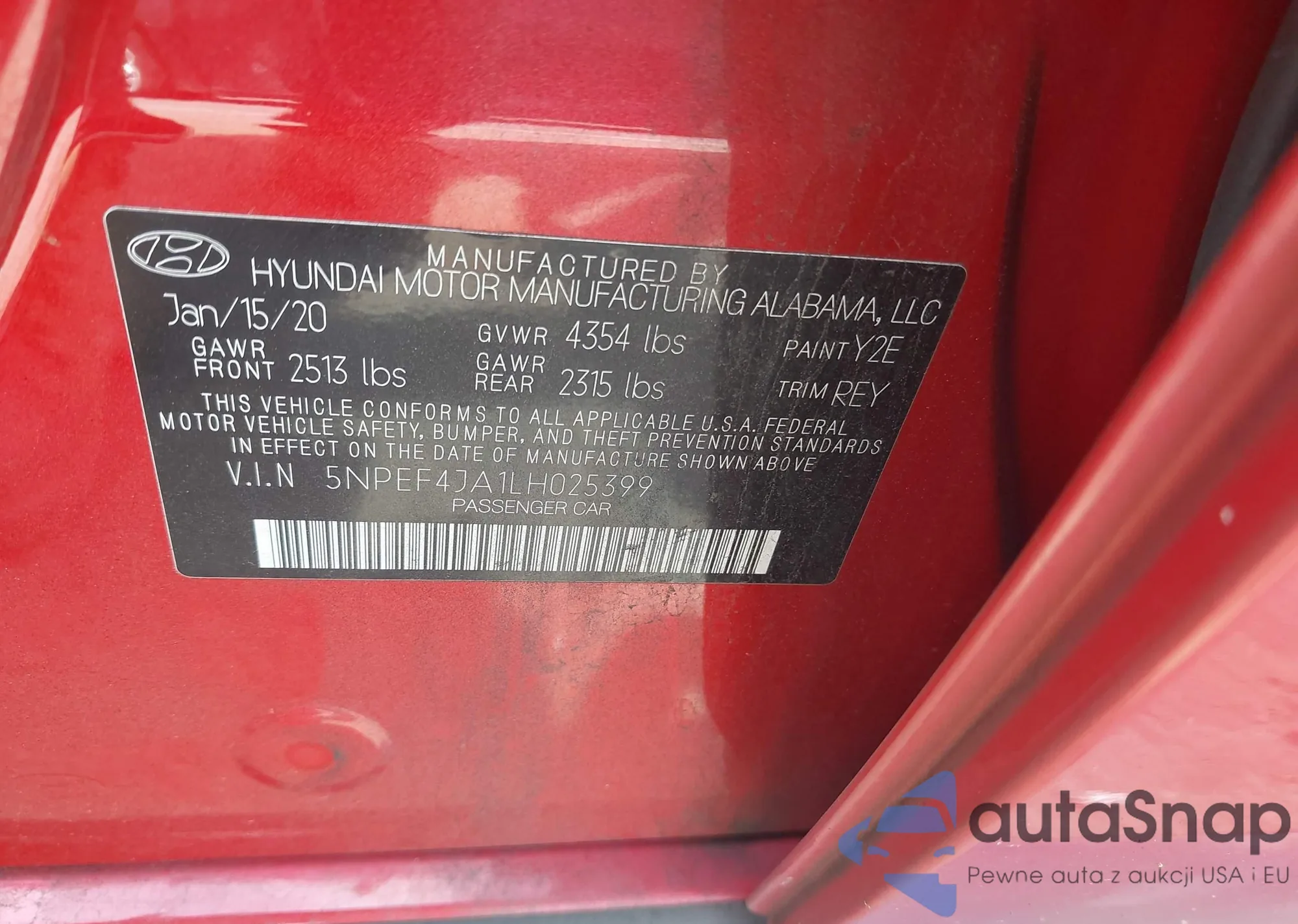 • VIN 5NPEF4JA1LH025399