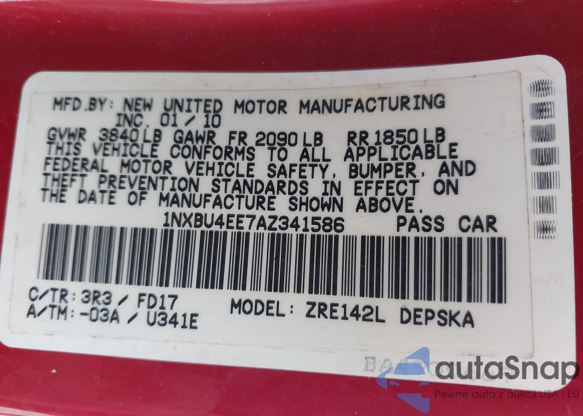 • VIN 1NXBU4EE7AZ341586