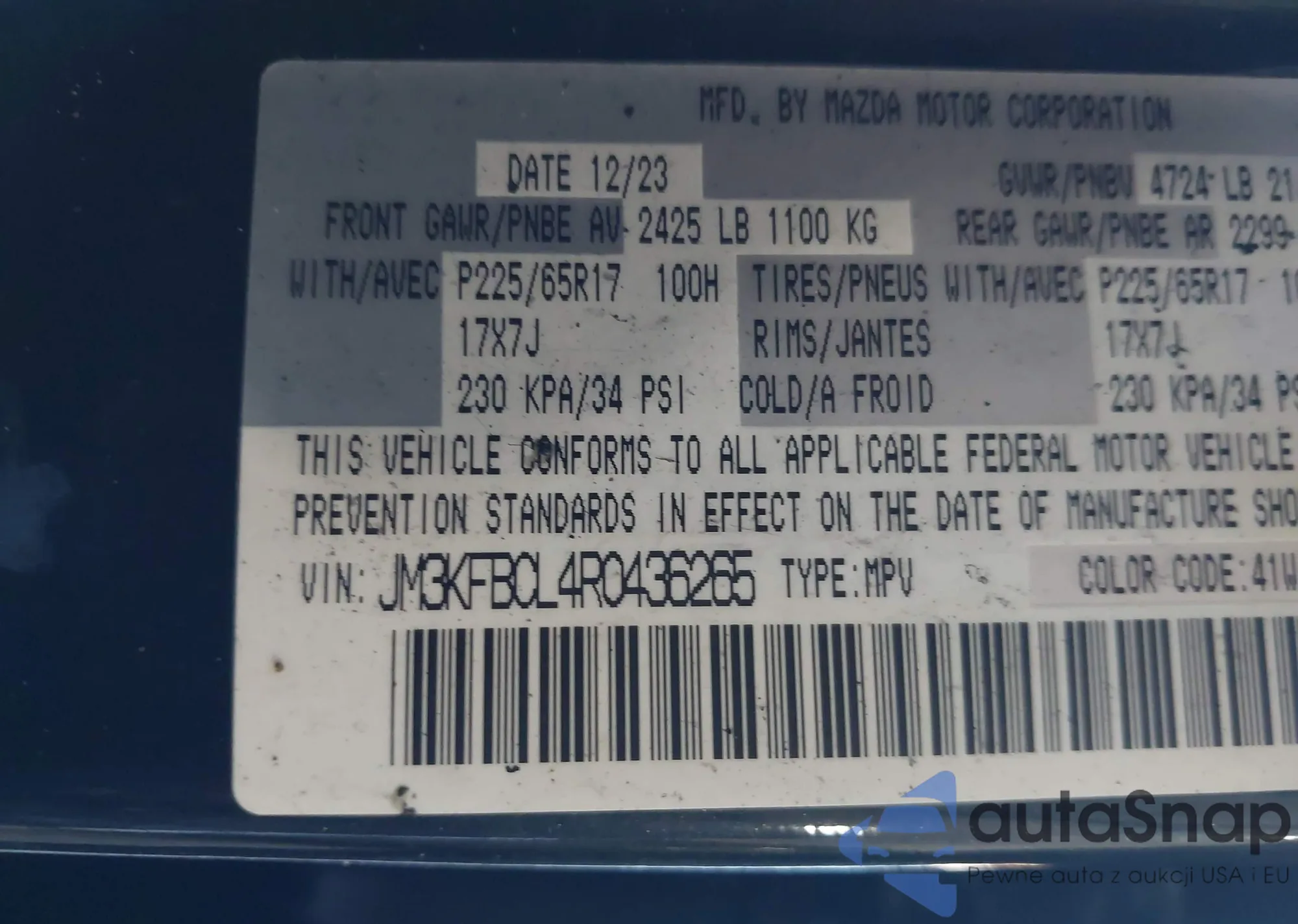 LOT: 42675236 VIN: JM3KFBCL4R0436265
