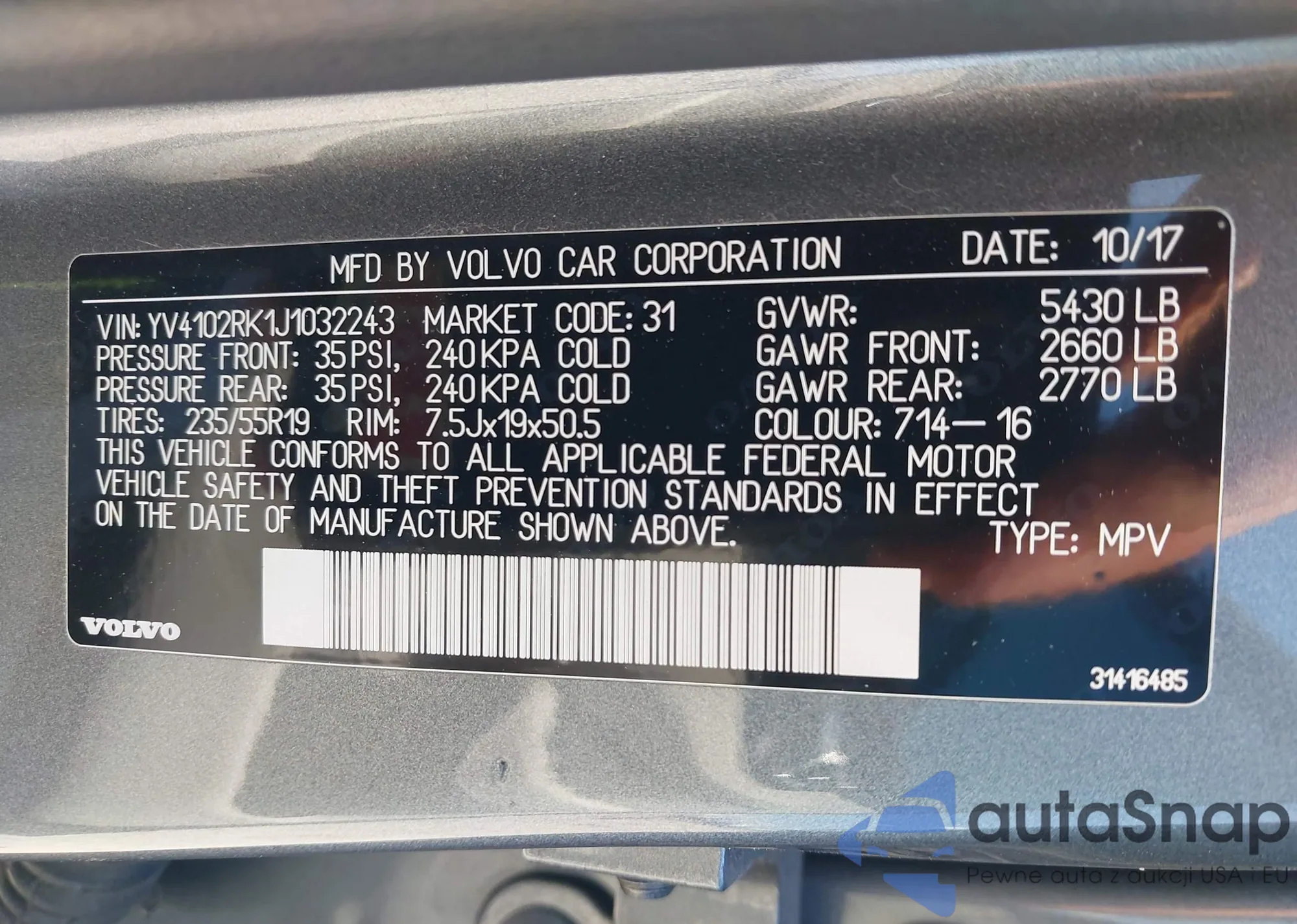 • VIN YV4102RK1J1032243