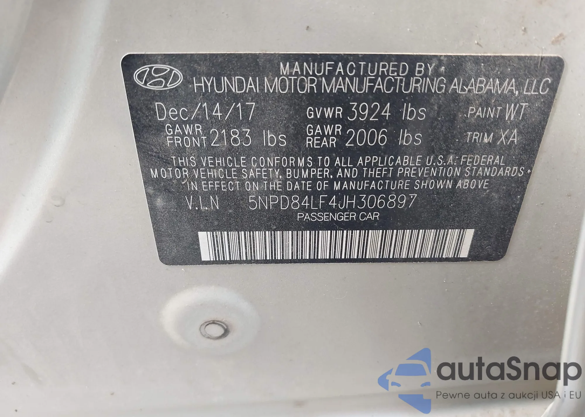 • VIN 5NPD84LF4JH306897