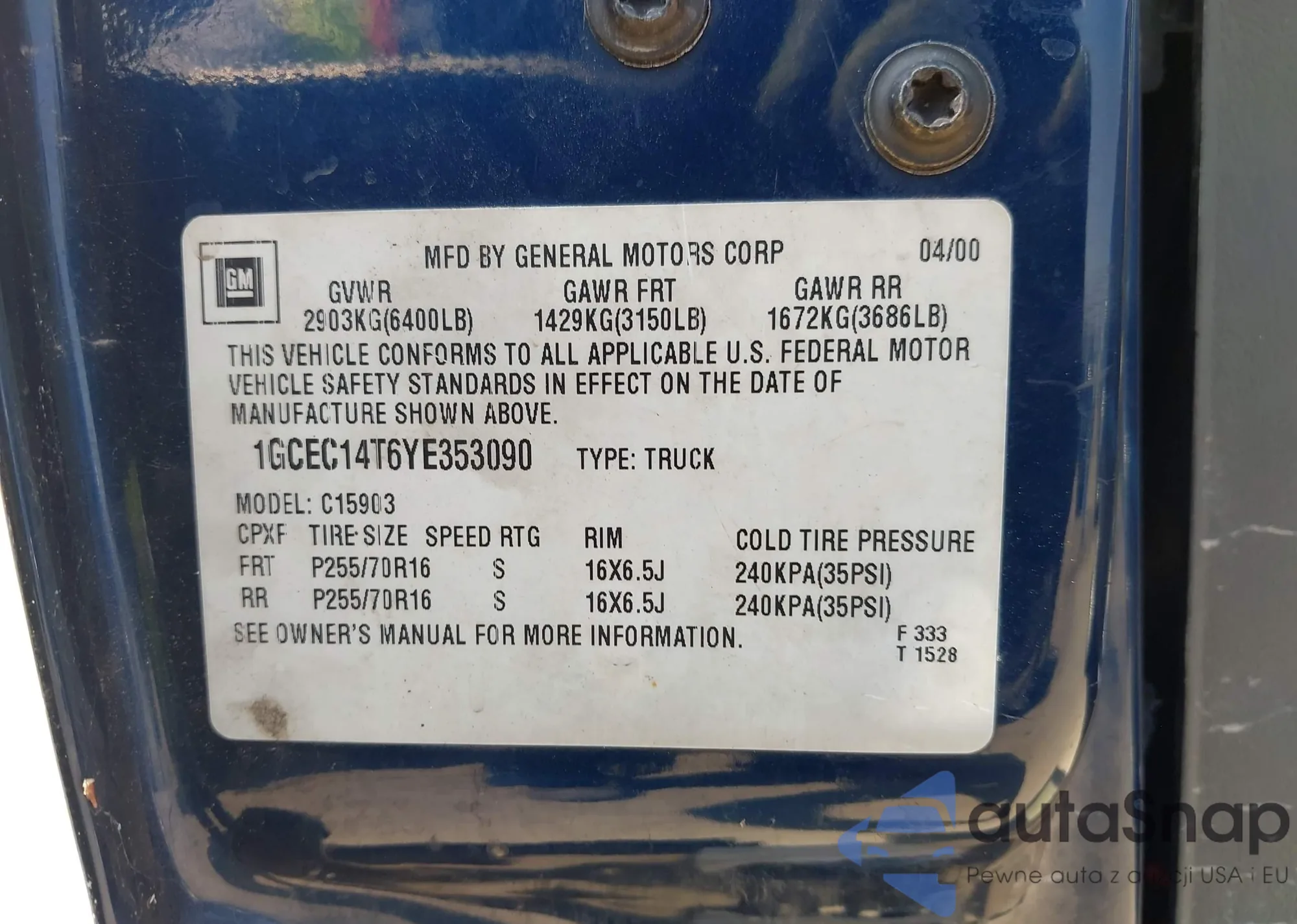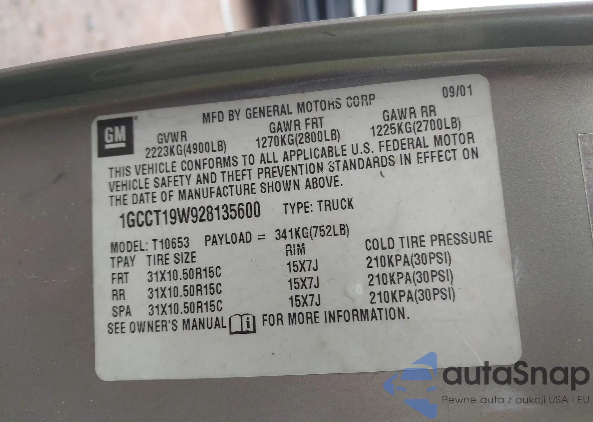 LOT: 42948133 VIN: 1GCCT19W928135600