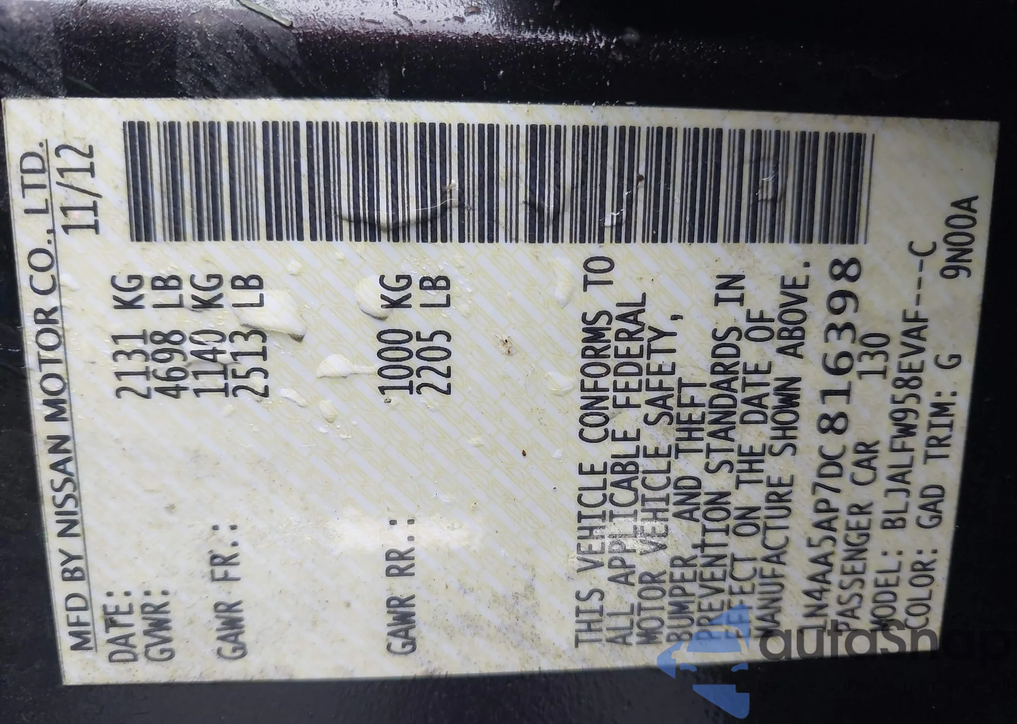 • VIN 1N4AA5AP7DC816398
