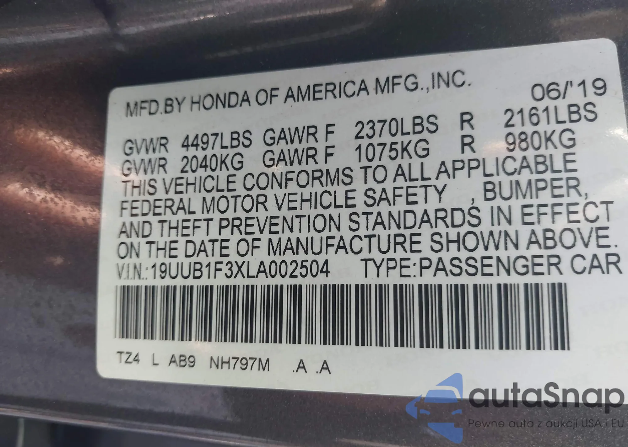 • VIN 2HGFB2F55CH326770