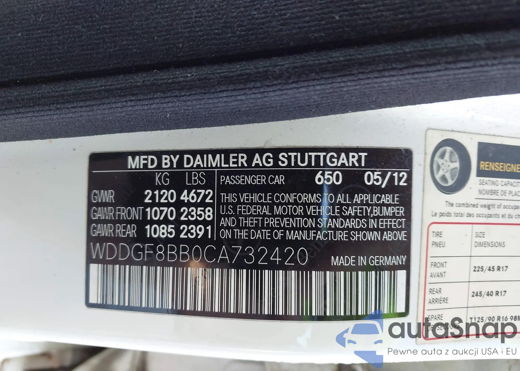 • VIN WDDGF8BB0CA732420