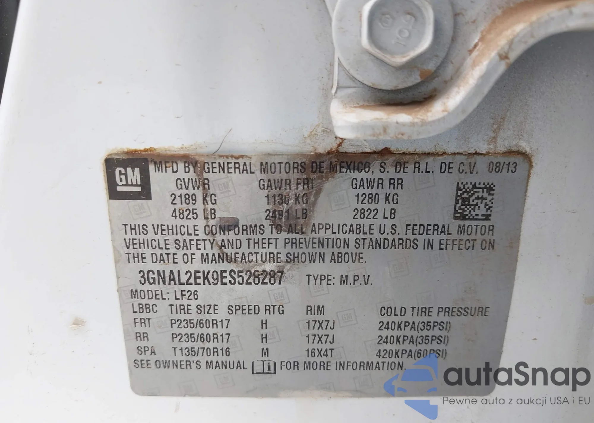 LOT: 43372808 VIN: 3GNAL2EK9ES528287