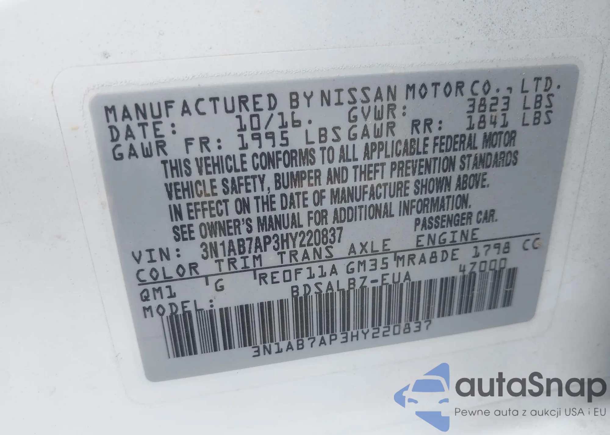 • VIN JN8AS5MT2EW603427