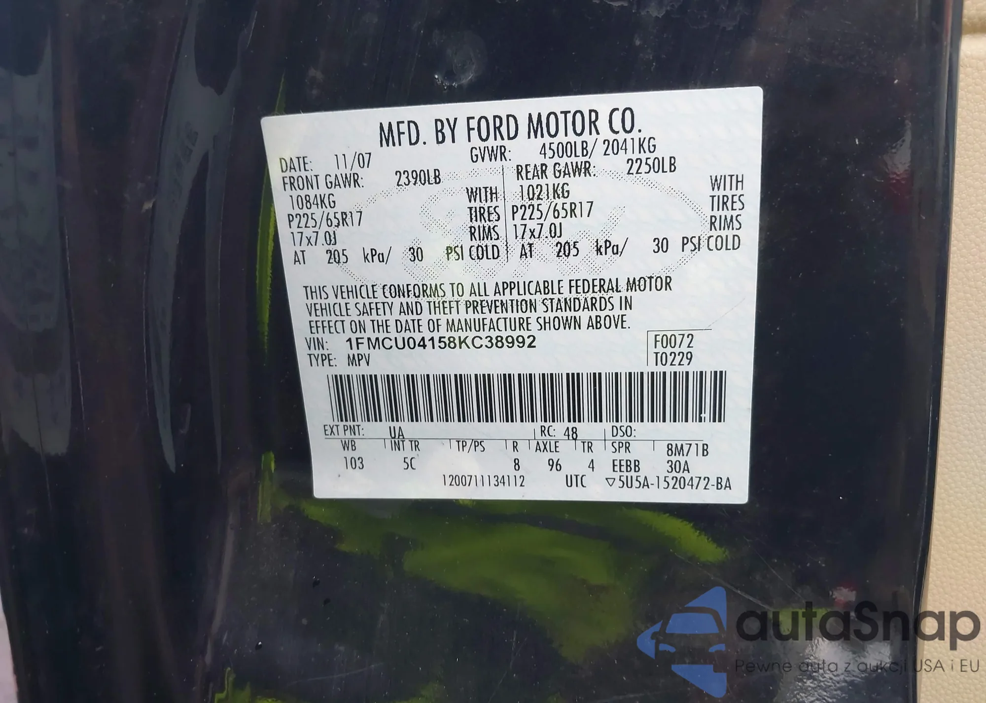 2008 Ford Escape Limited из США, поврежденный, VIN 1FMCU04158KC38992
