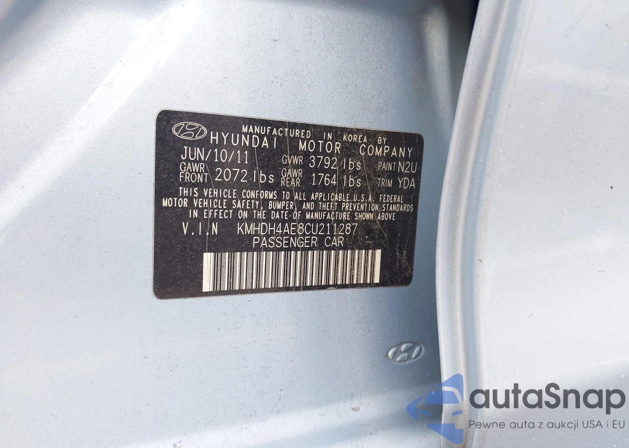 LOT: 43432173 VIN: KMHDH4AE8CU211287