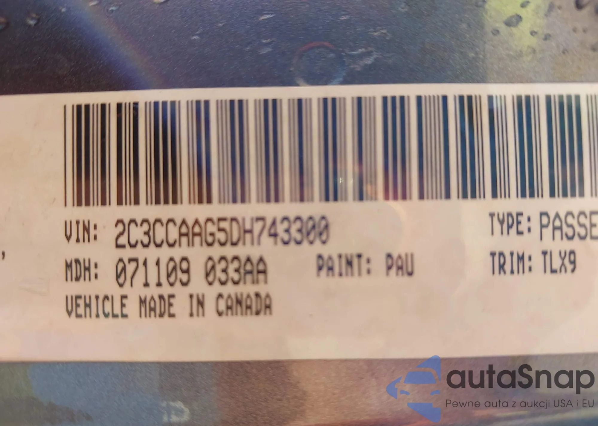 LOT: 43345685 VIN: 2C3CCAAG5DH743300