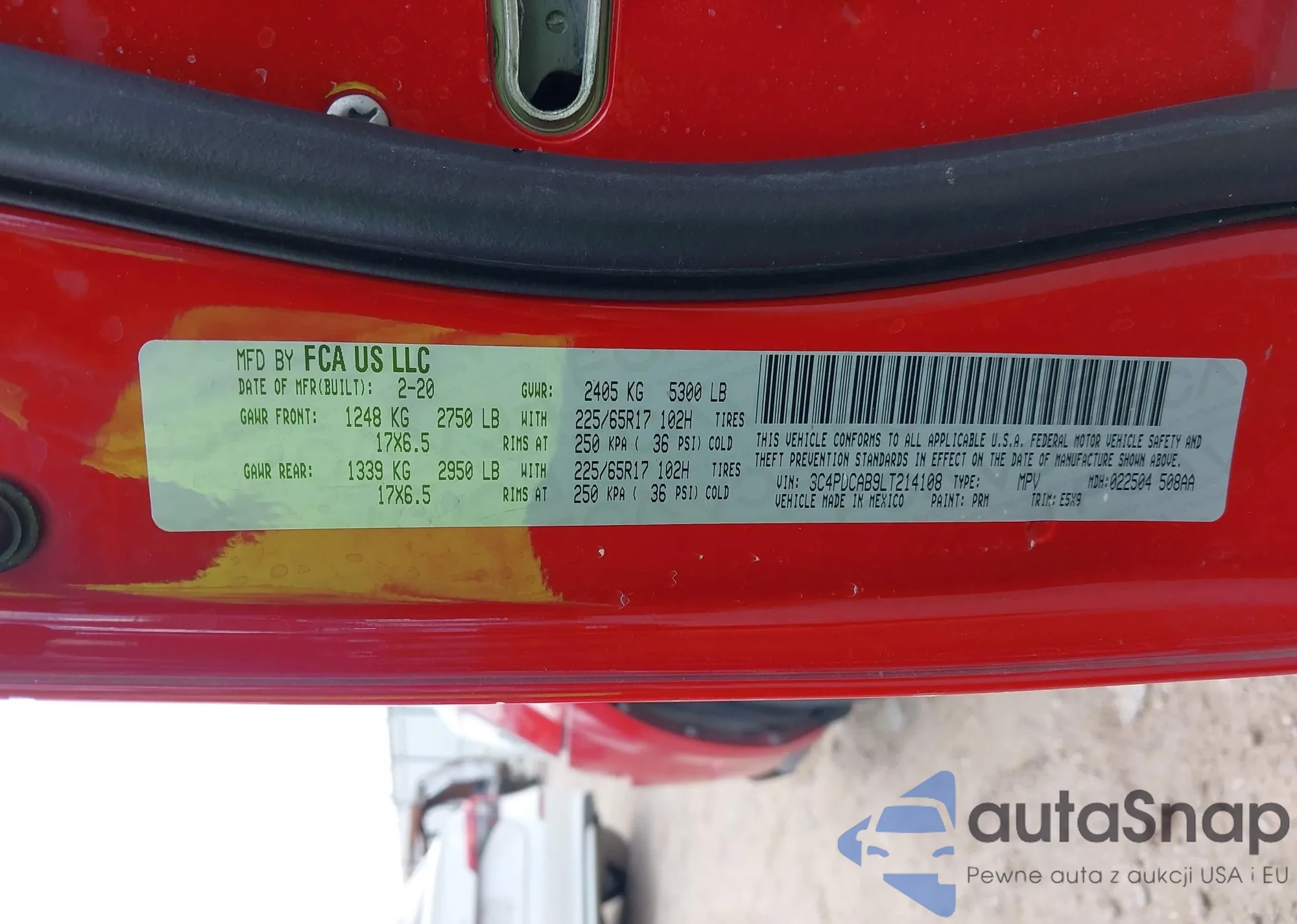 LOT: 43330951 VIN: 1C3EJ56H3SN524718