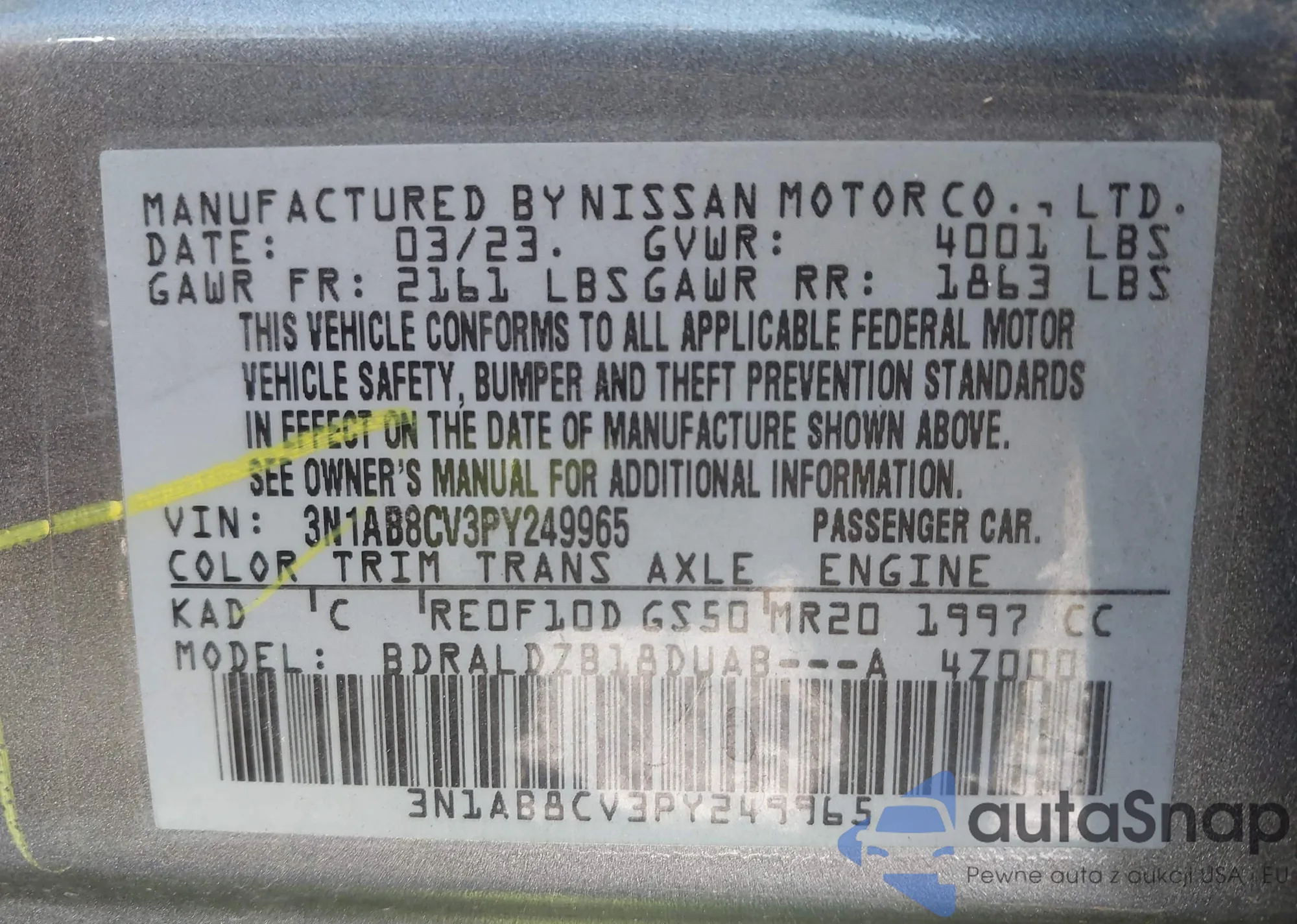 • VIN WBALZ3C55CDL70818