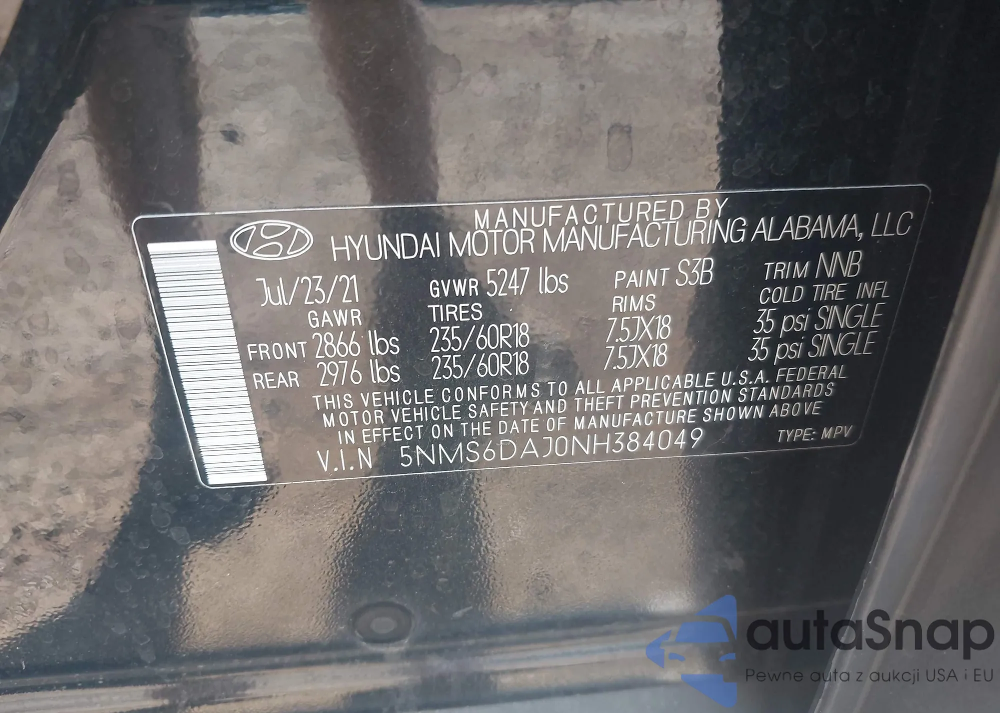 • VIN 5NMS6DAJ0NH384049