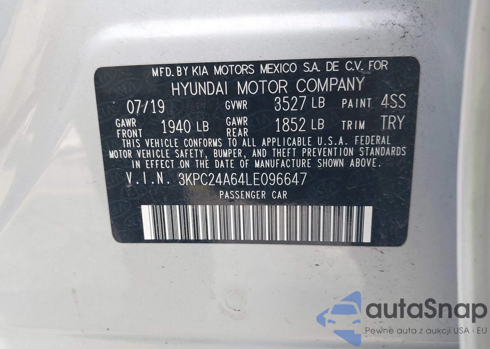 • VIN 3KPC24A64LE096647