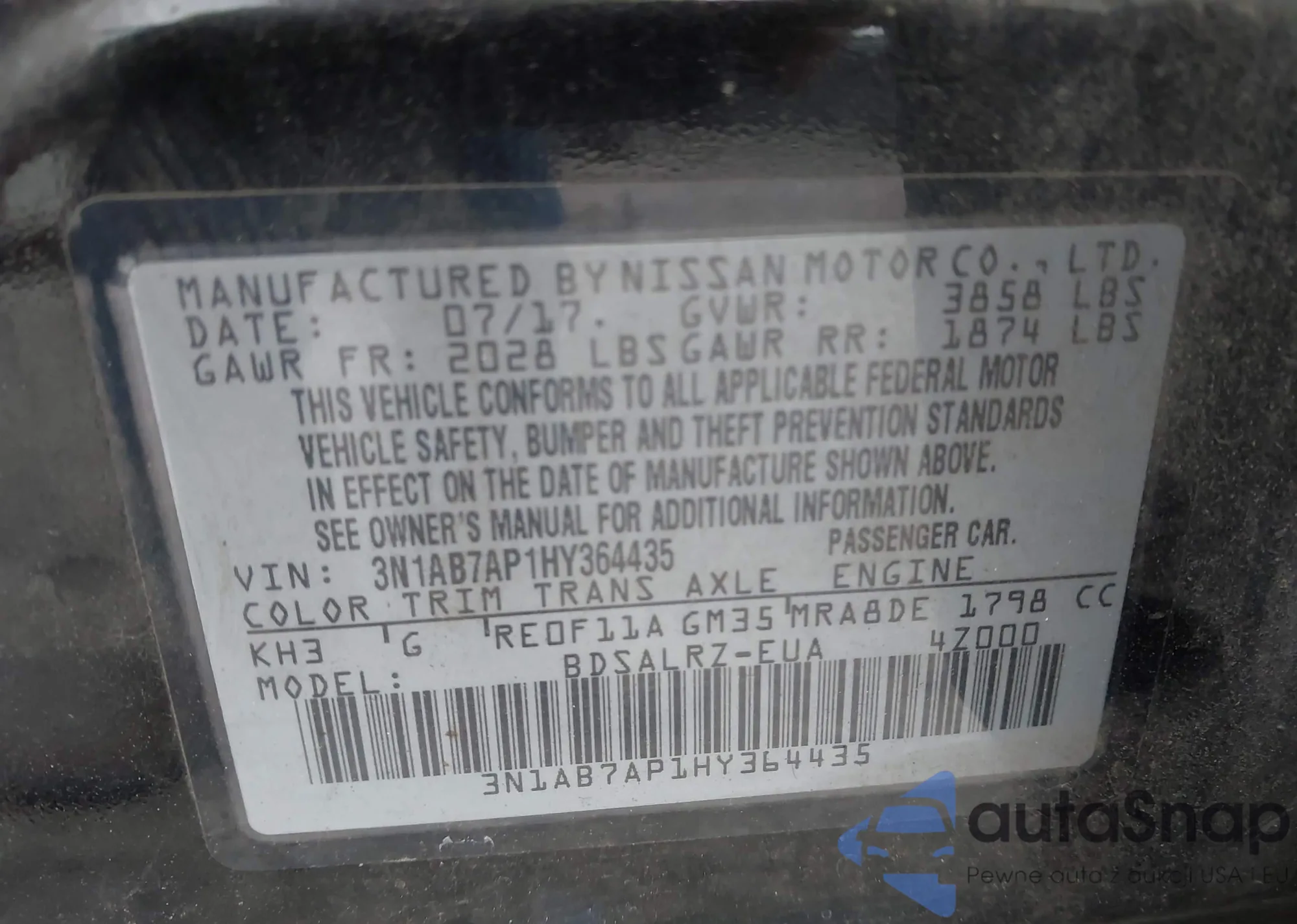• VIN 3N1AB7AP1HY364435