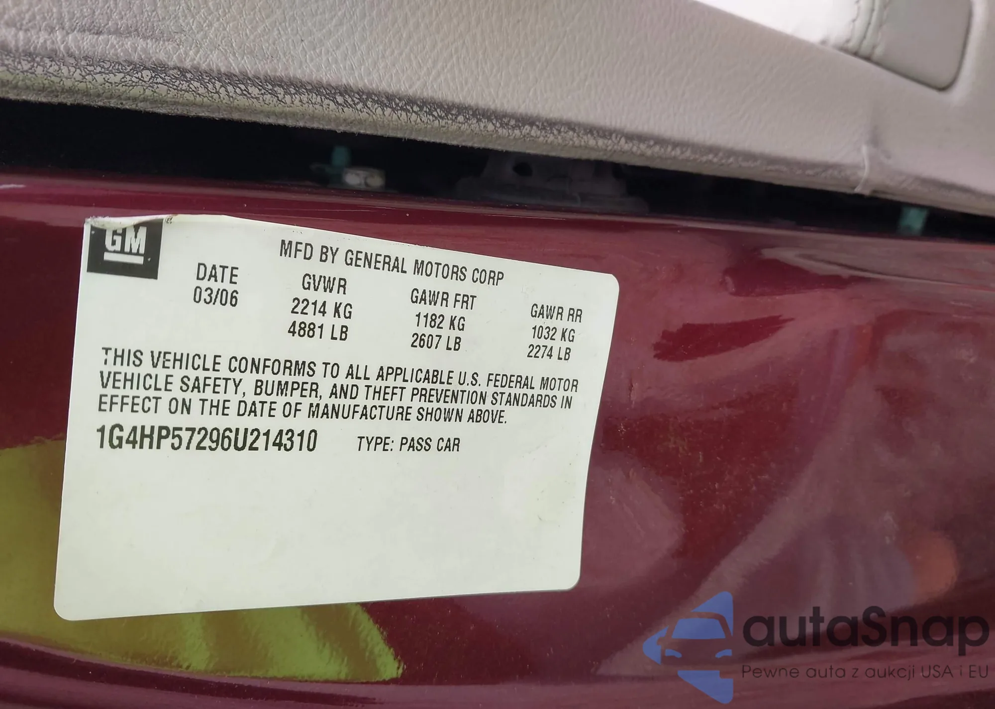 LOT: 43388295 VIN: 1G4HP57296U214310