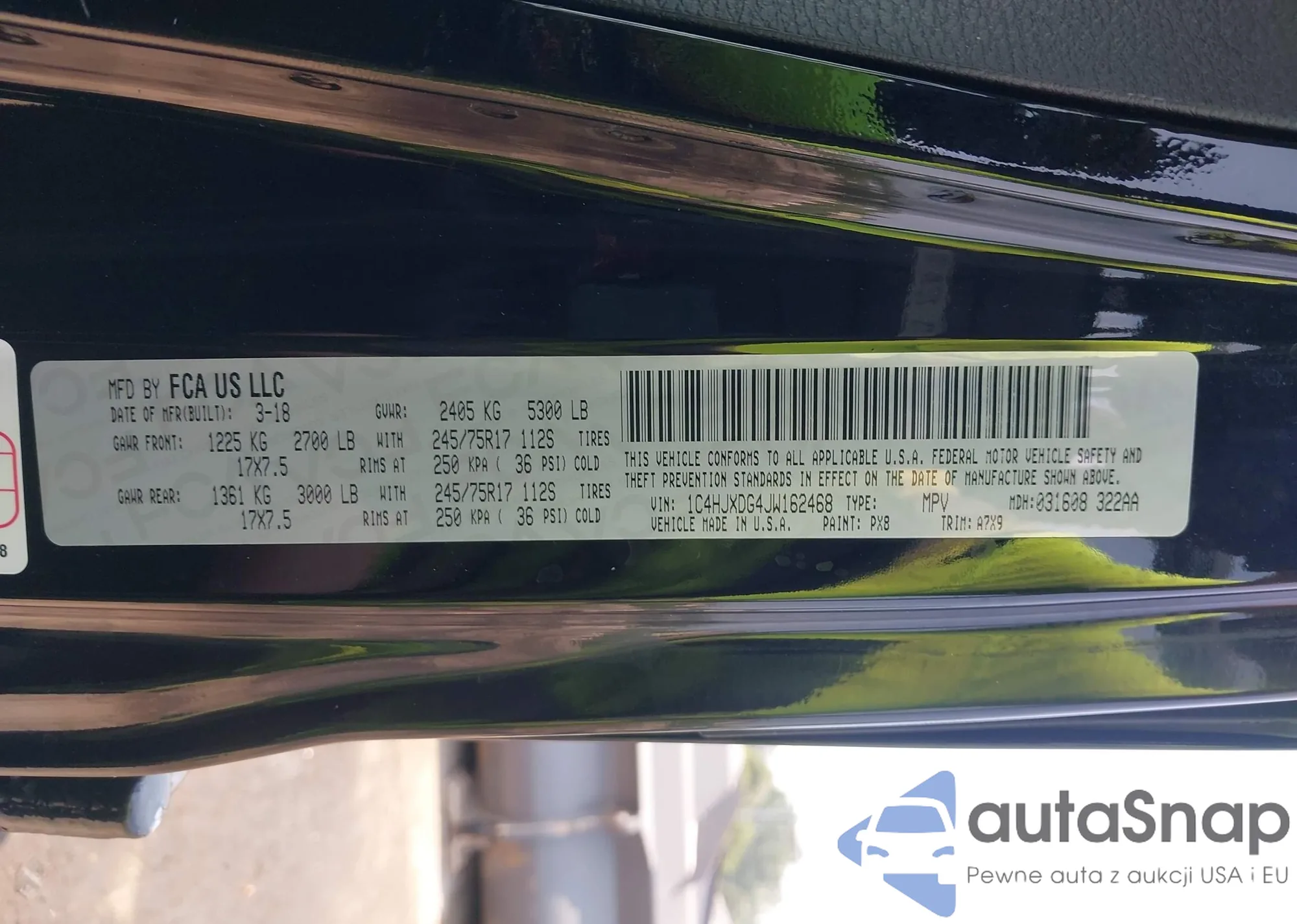 • VIN 1C4HJXDG4JW162468