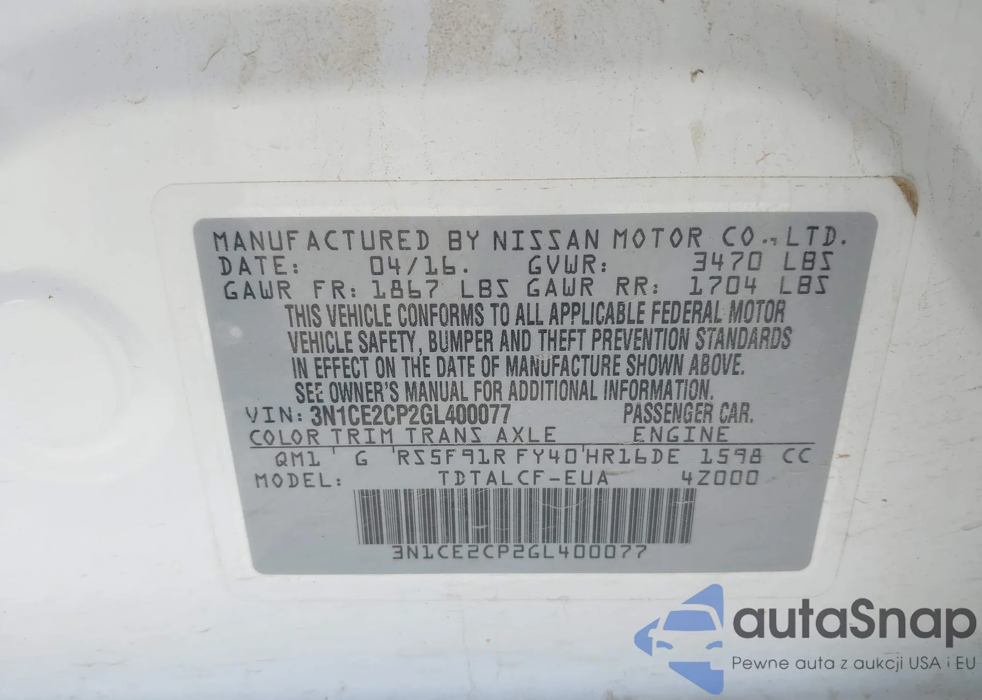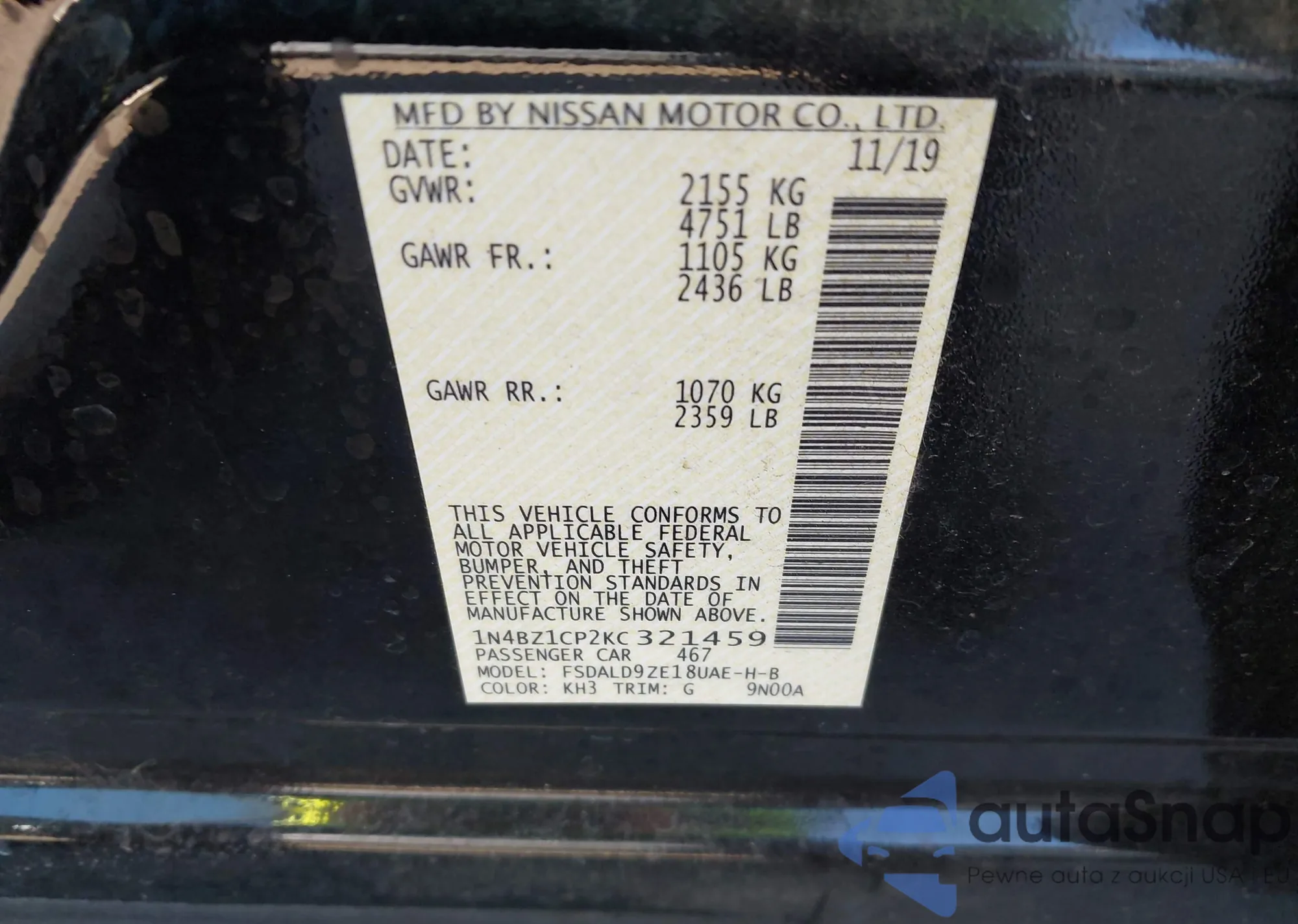 • VIN 1N4BZ1CP2KC321459