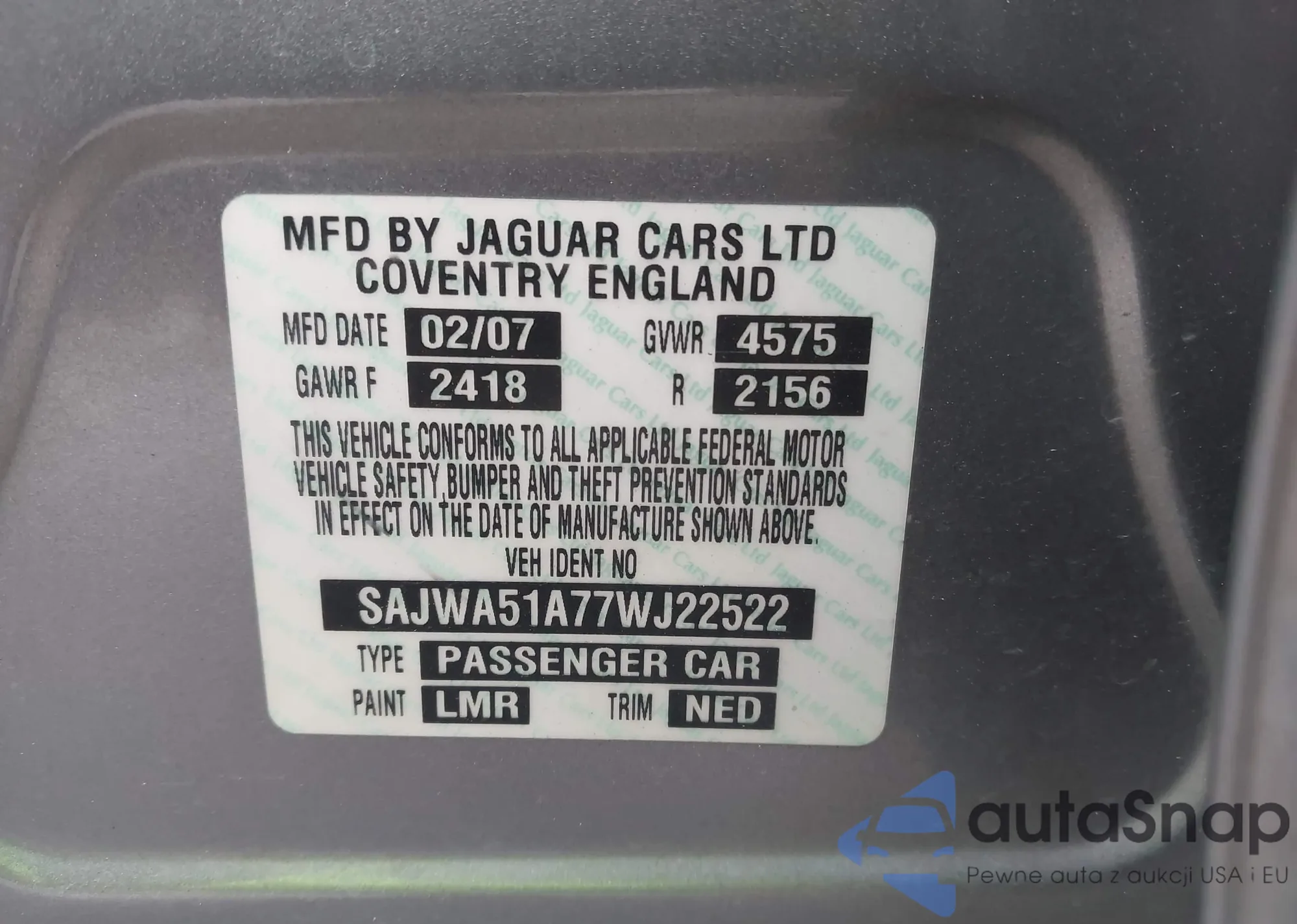 LOT: 43415554 VIN: SAJWA51A77WJ22522