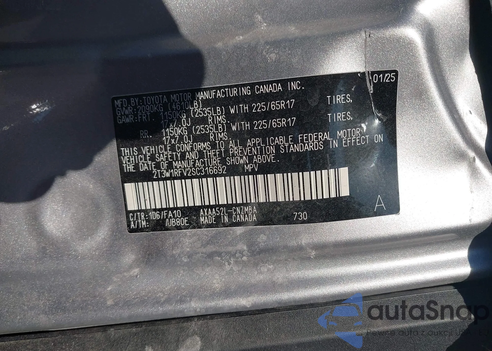 LOT: 43455683 VIN: 2T3W1RFV2SC316692