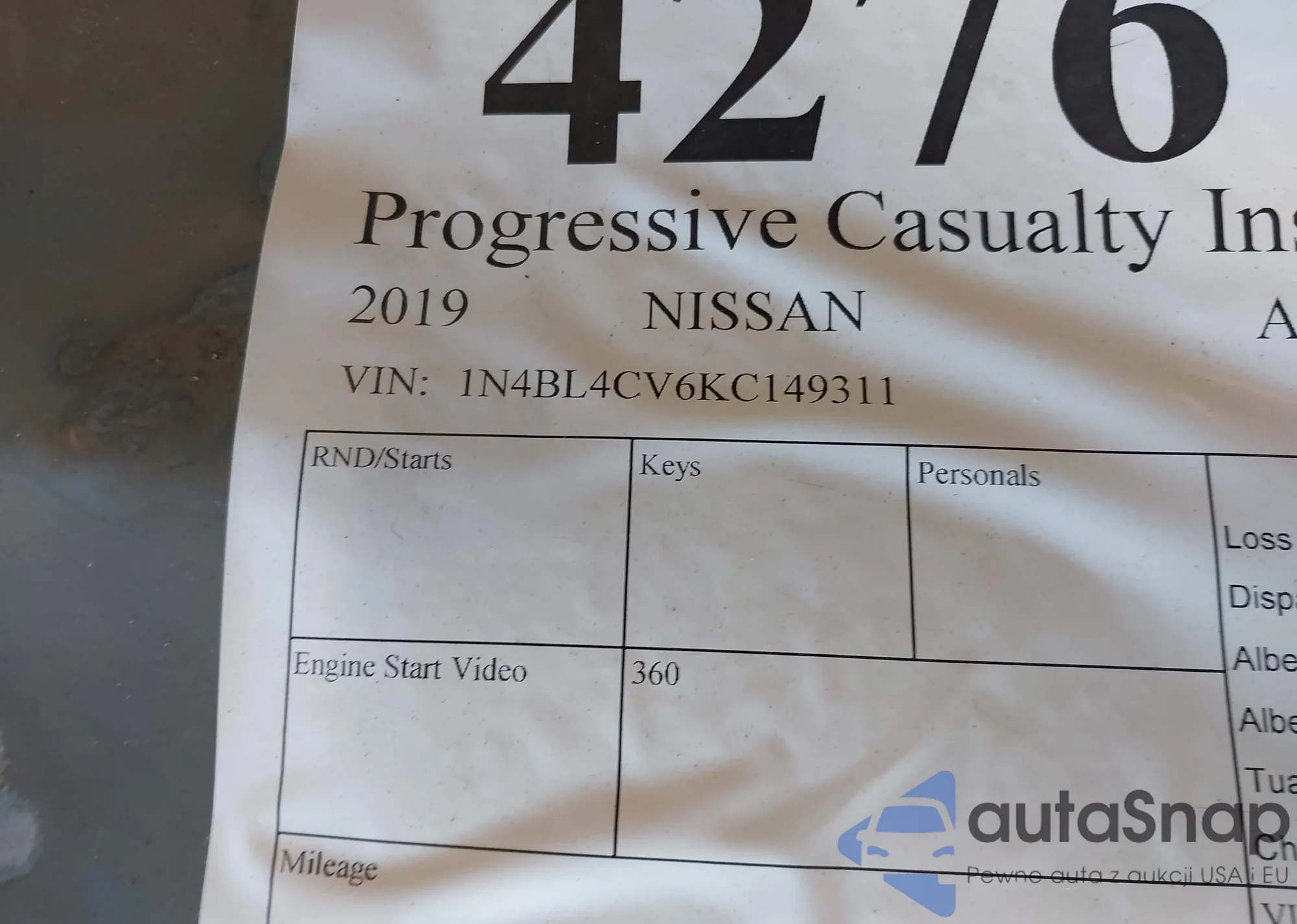LOT: 43448126 VIN: 1N4AL3AP4EC109789
