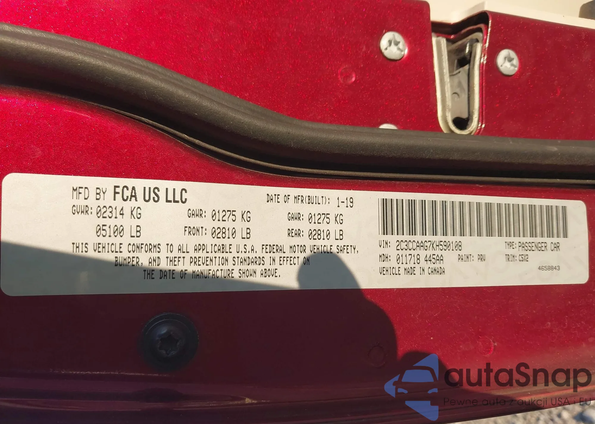 • VIN 2C3CCAAG7KH590108