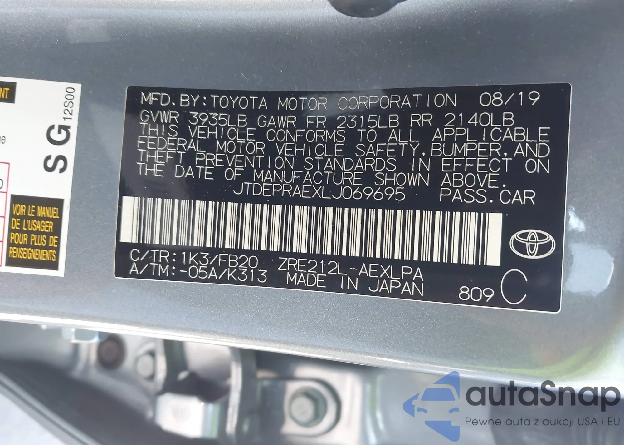 • VIN JTDEPRAEXLJ069695