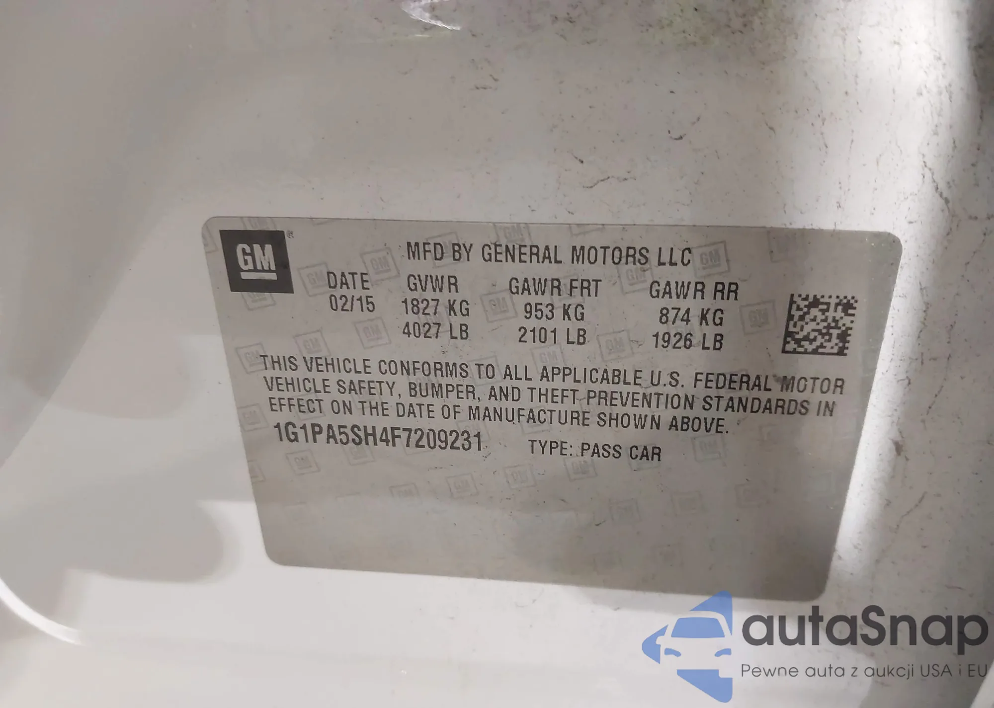 LOT: 43335340 VIN: 1G1PA5SH4F7209231