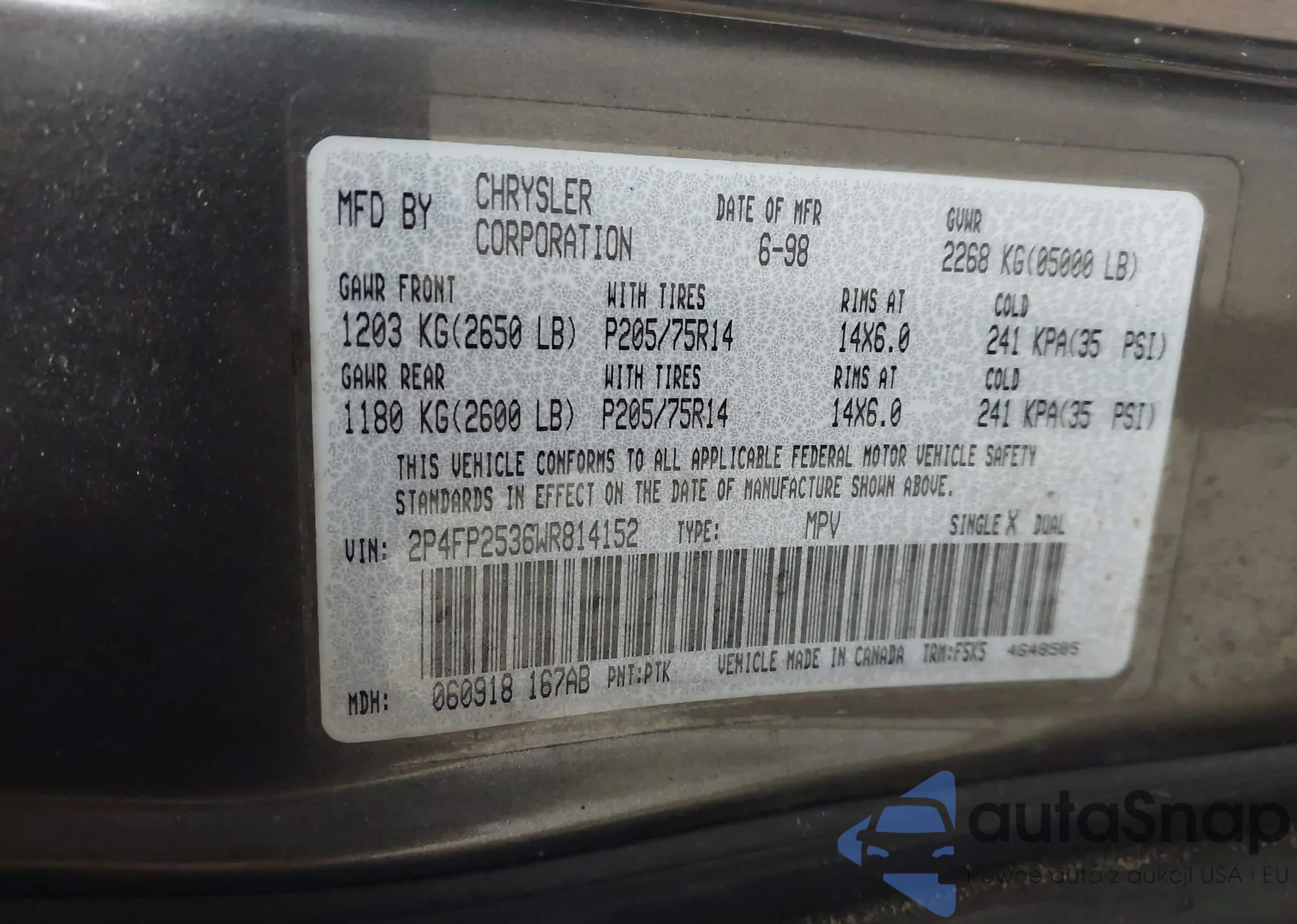 • VIN 2P4FP2536WR814152
