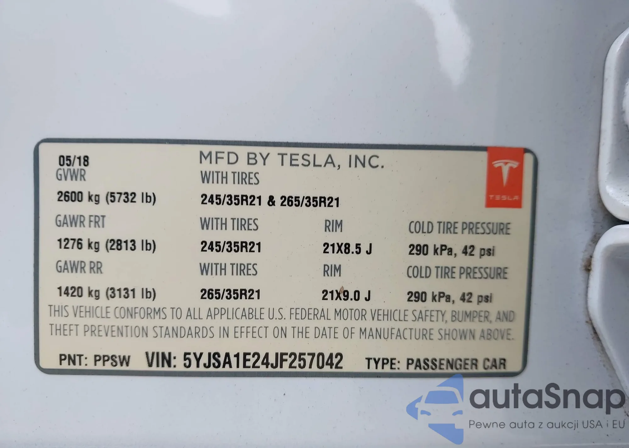 • VIN 5YJSA1E24JF257042