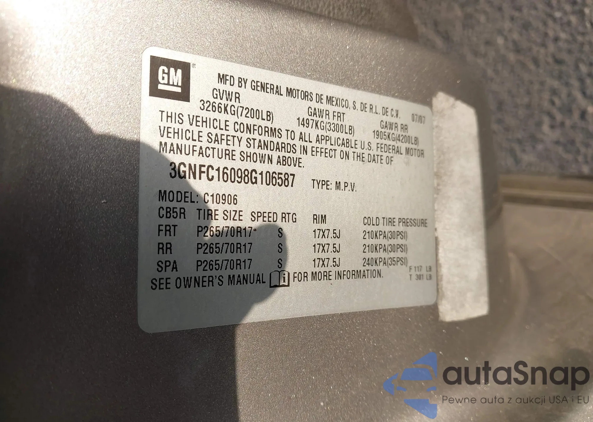 LOT: 43343278 VIN: 3GNFC16098G106587