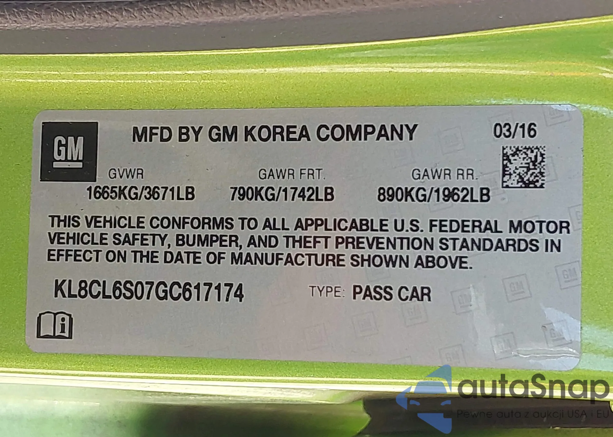• VIN 1G1PA5SG4F7228658