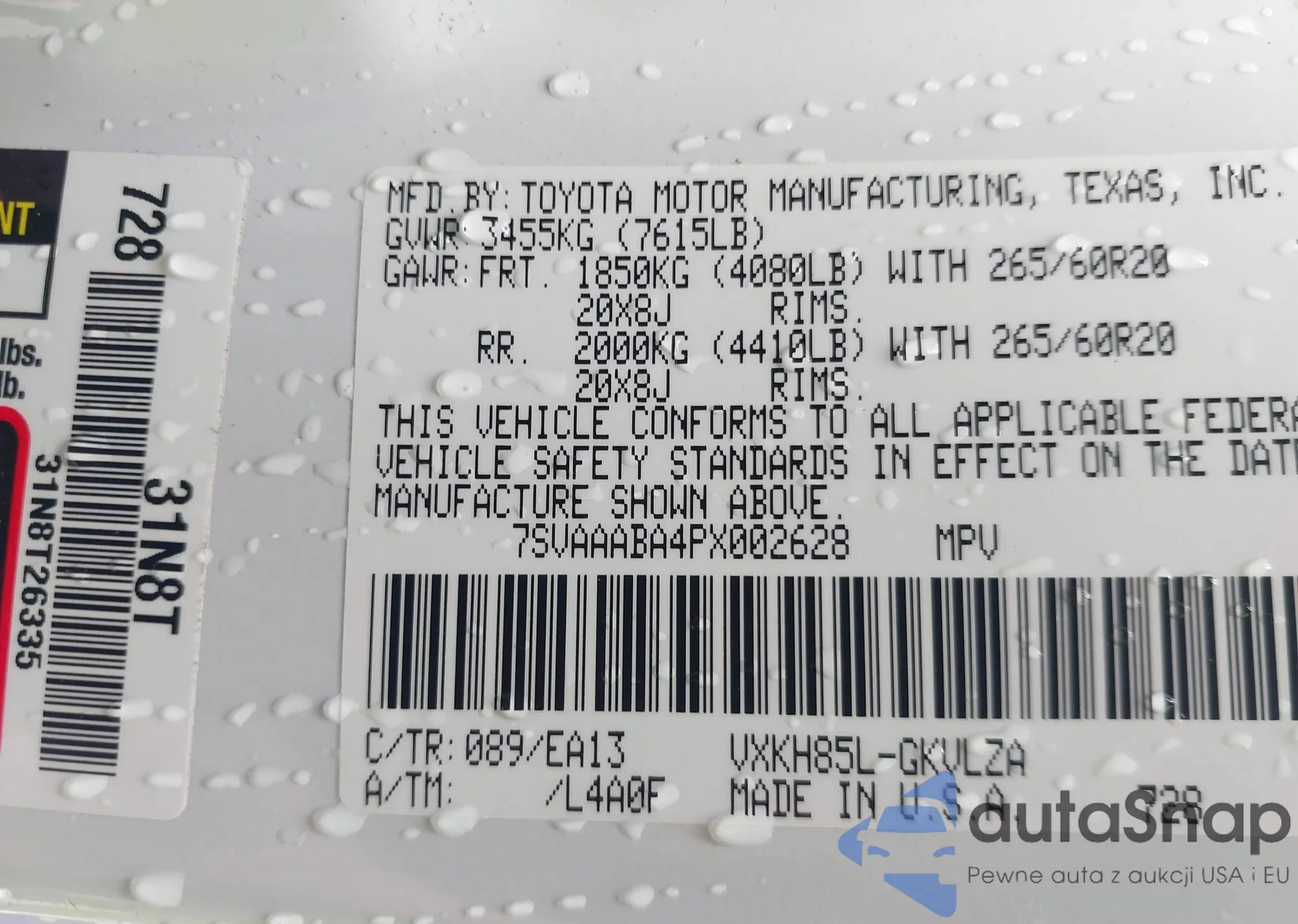 • VIN 7SVAAABA4PX002628