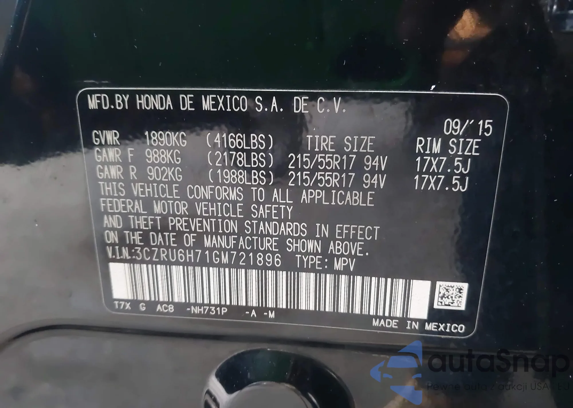 • VIN 3CZRU6H71GM721896