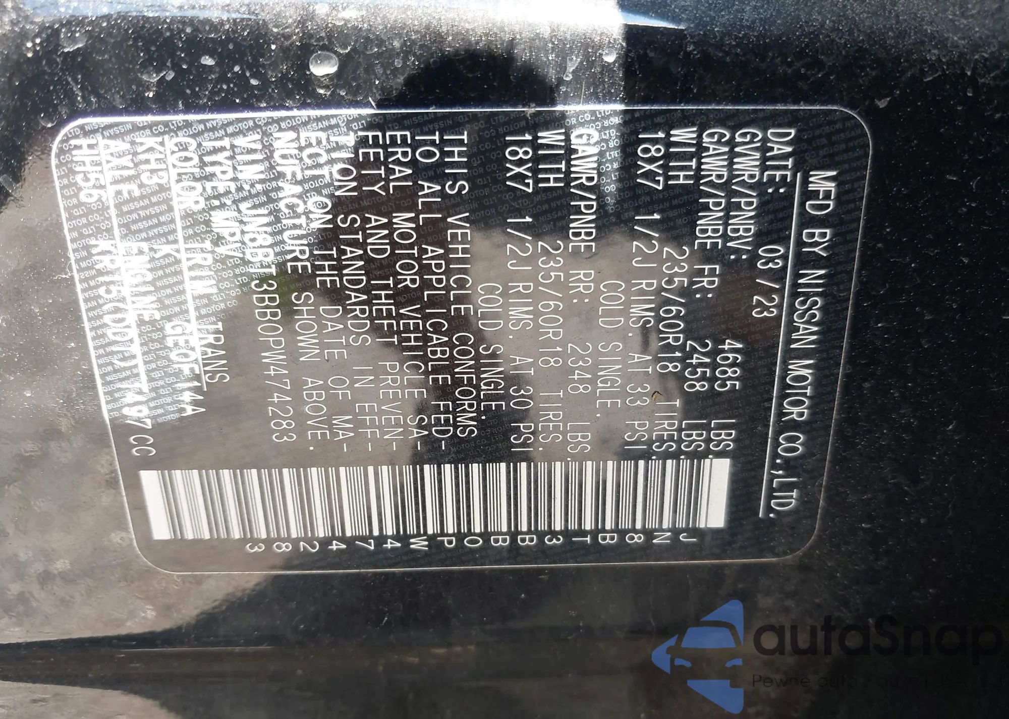 LOT: 42779381 VIN: JN8BT3BB0PW474283