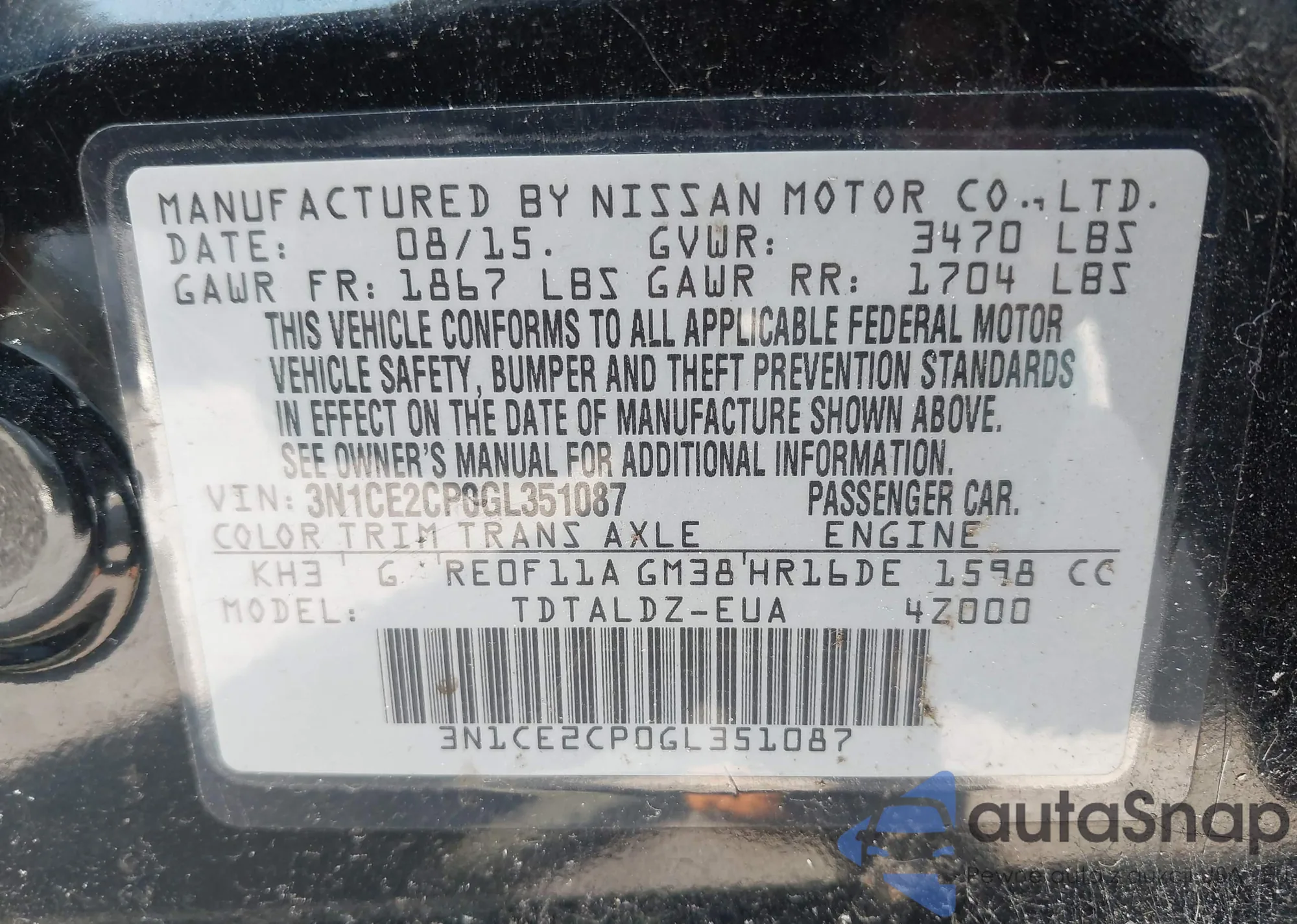 • VIN 3N1CE2CP0GL351087