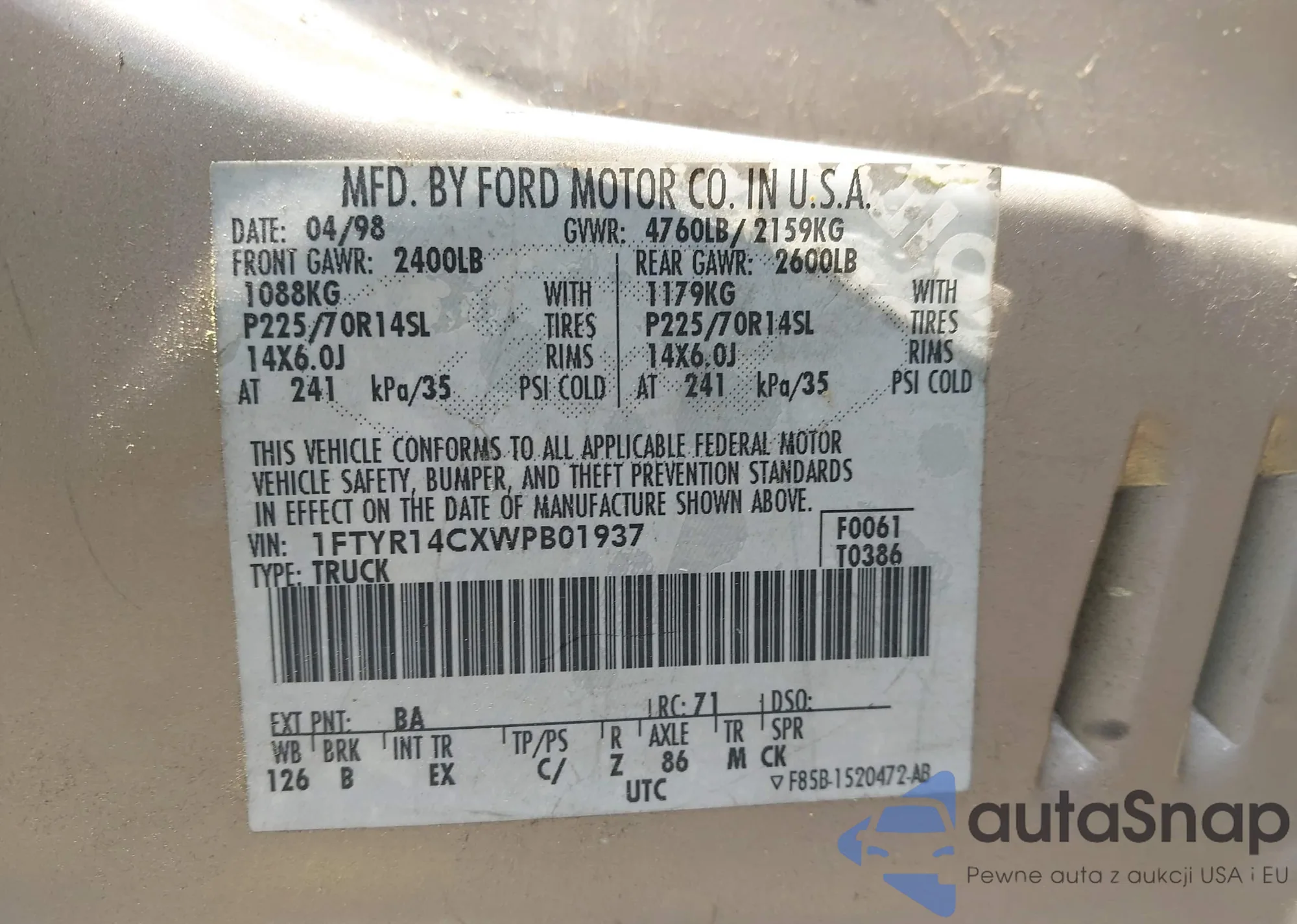 LOT: 42922973 VIN: 7SVAAABA4PX002628