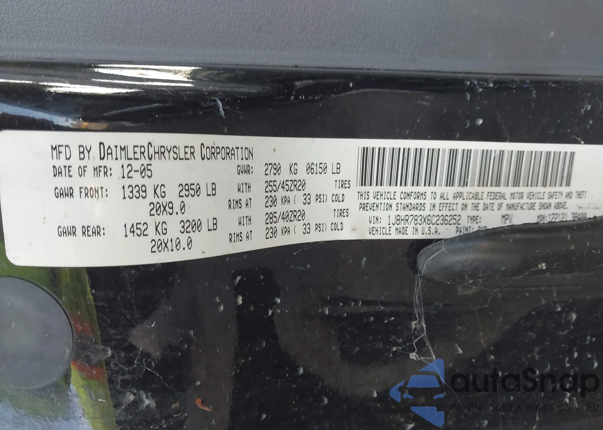 • VIN 1HGCR3F86DA015461