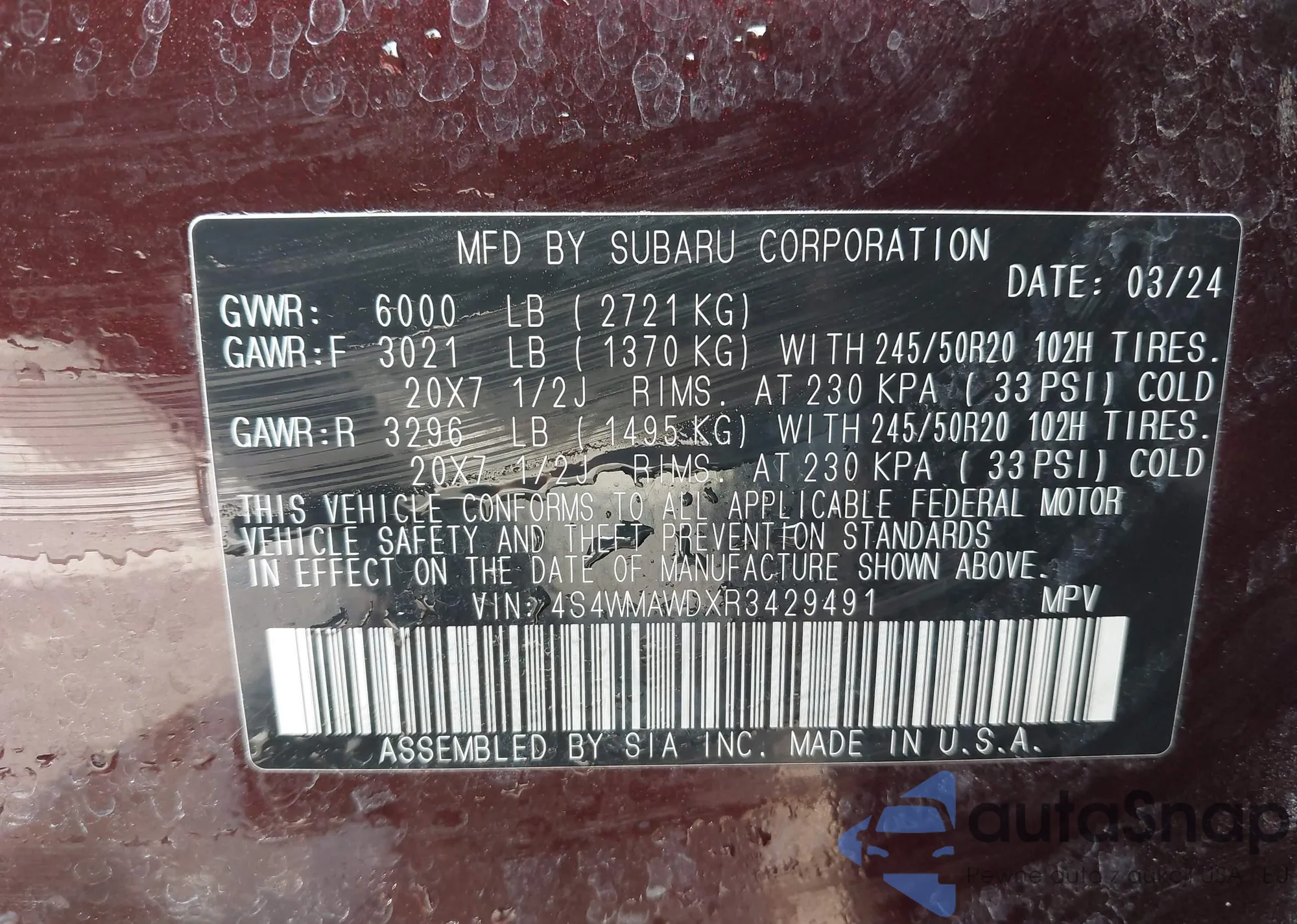 • VIN 4S4WMAWDXR3429491