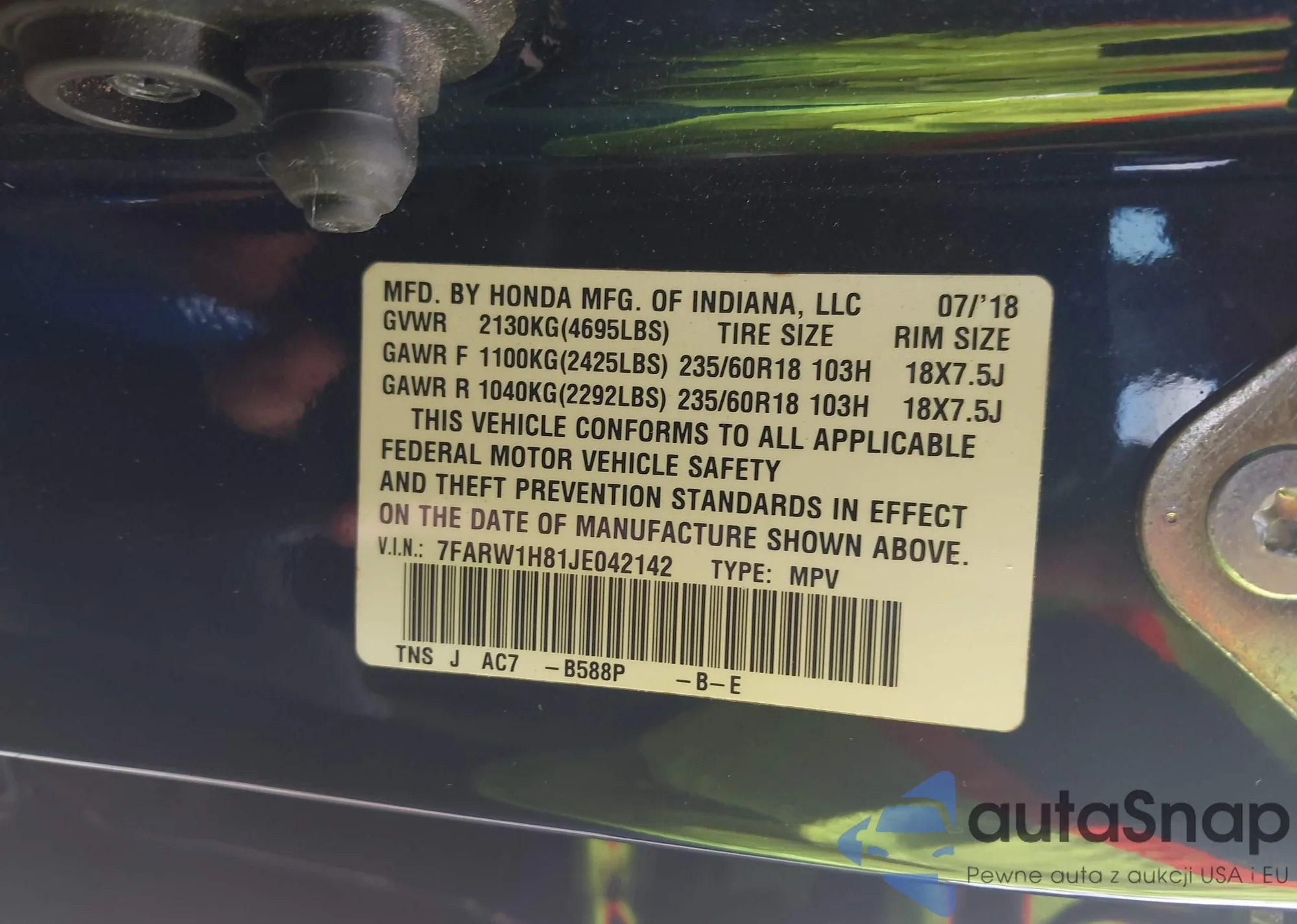 • VIN 3TYAX5GN0MT016818