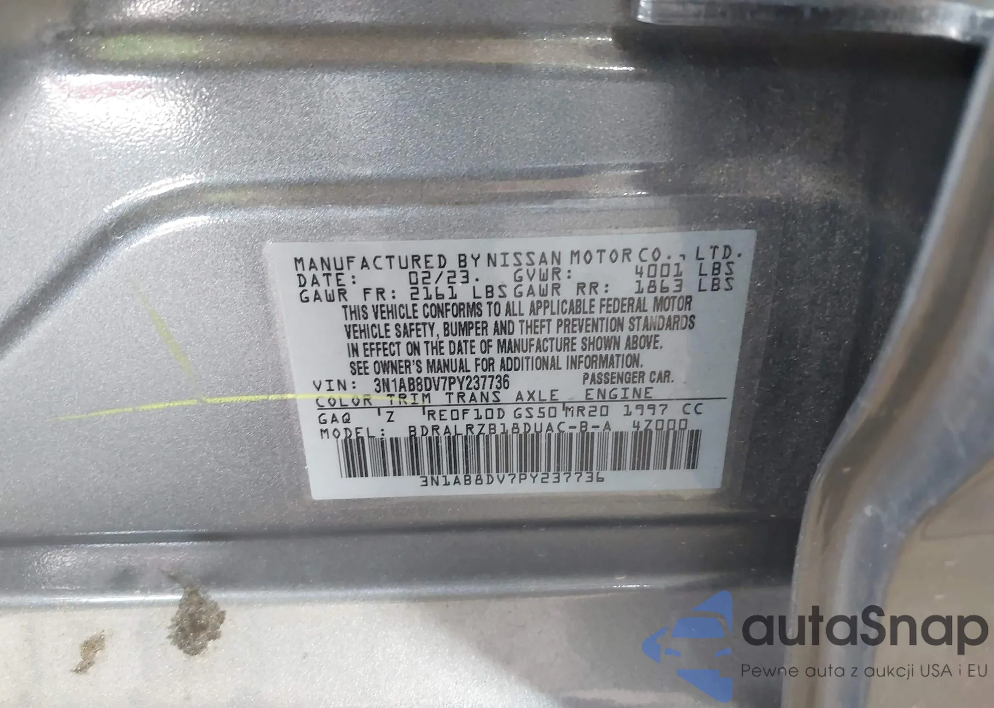 2023 Nissan Sentra Sr Xtronic Cvt из США, поврежденный, VIN 3N1AB8DV7PY237736