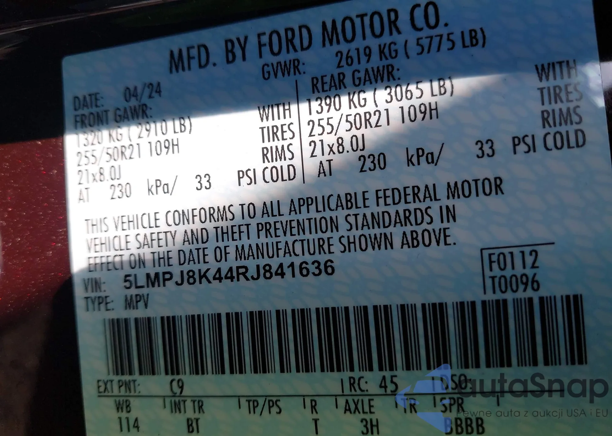 LOT: 43428749 VIN: 1FMCU0G96FUA18571