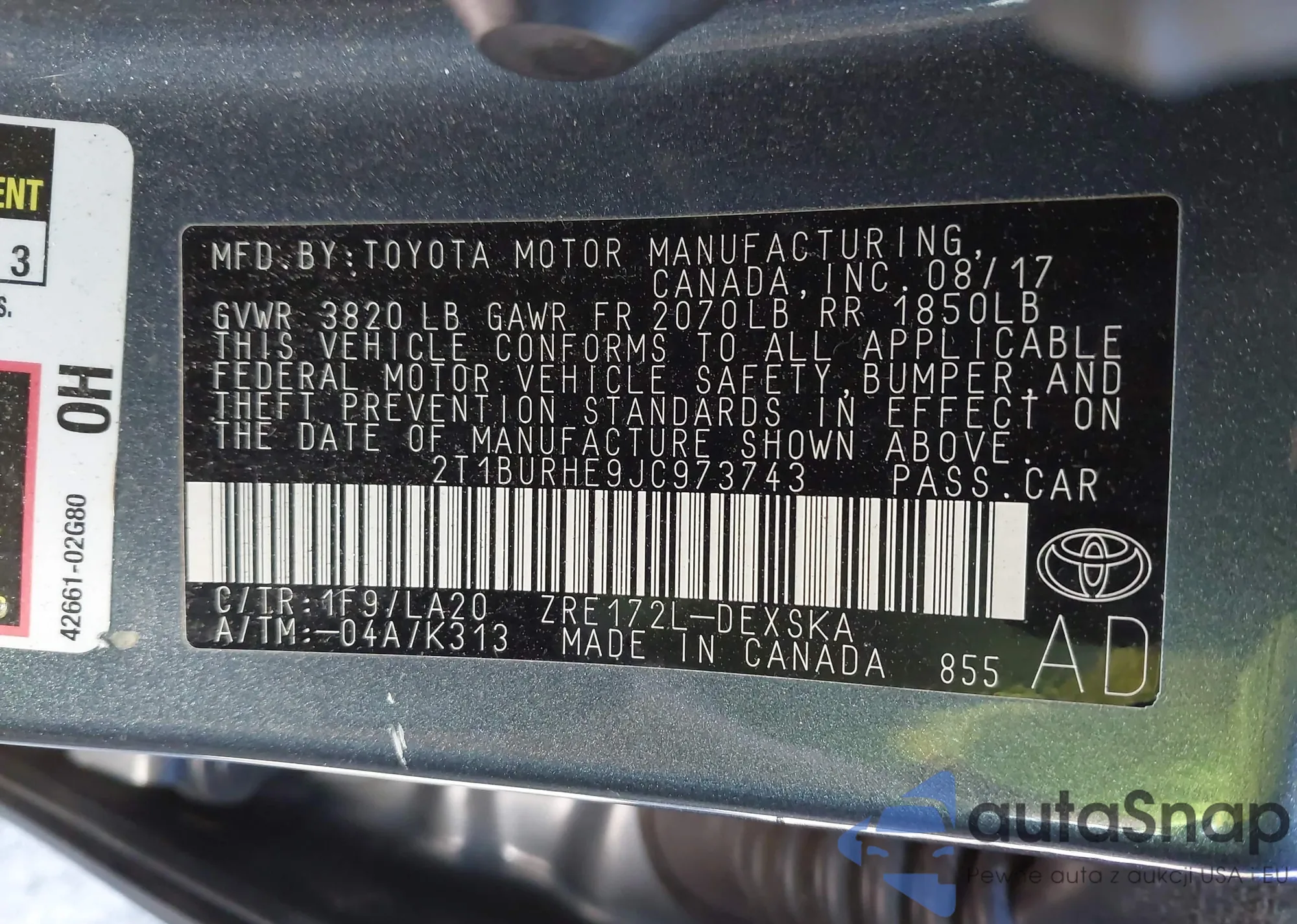 • VIN 2T1BURHE9JC973743