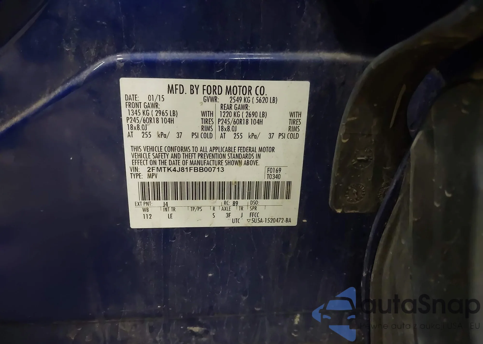 LOT: 43573735 VIN: 2FMTK4J81FBB00713