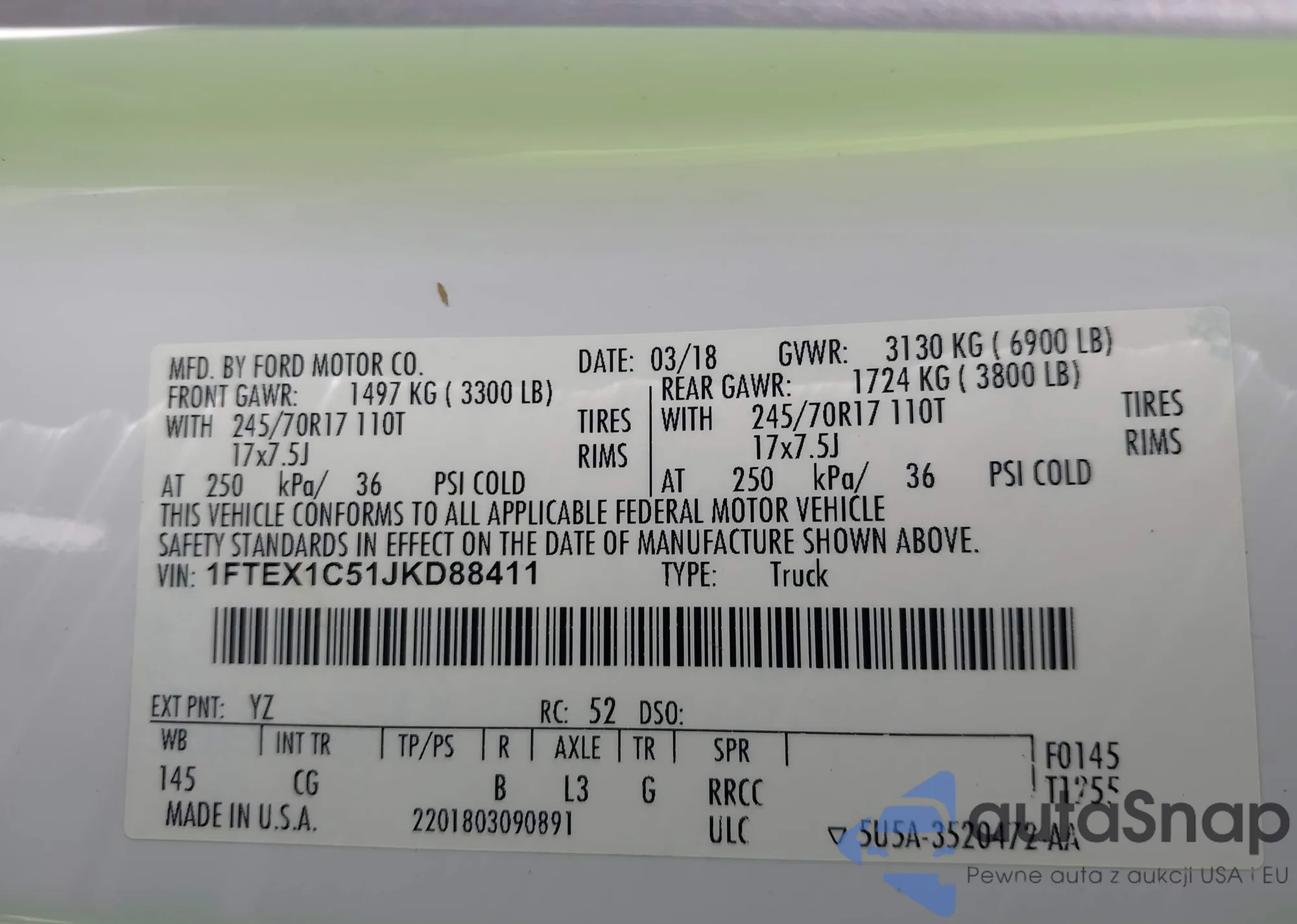 2018 Ford F-150 Xl из США, поврежденный, VIN 1FTEX1C51JKD88411